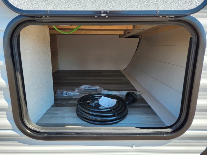 The Jayco Jay Flight SLX travel trailer is quite easy to own because it is lightweight for an easier towing experience. Built on a fully integrated A-frame with galvanized-steel, impact-resistant wheel wells, the Jay Flight SLX has quality at its very foundation. That quality continues on to the electric self-adjusting brakes, easy-lube hubs, Magnum Truss roof system, and LP quick connect. Some of what the mandatory Customer Value Package includes is backup camera prep, Keyed-Alike entry and baggage doors, marine grade exterior speakers, and an on-demand tankless water heater.