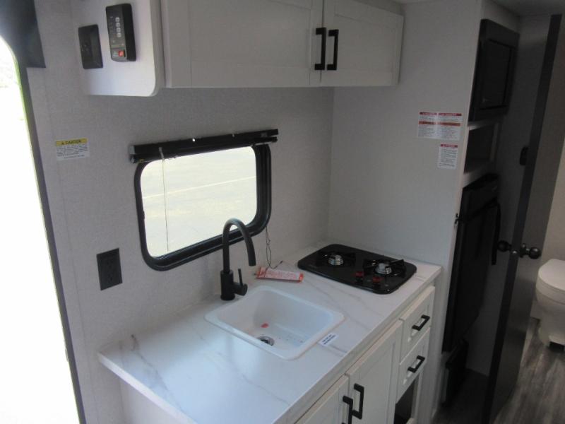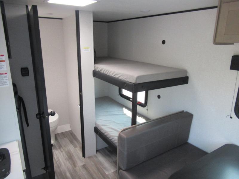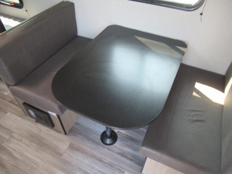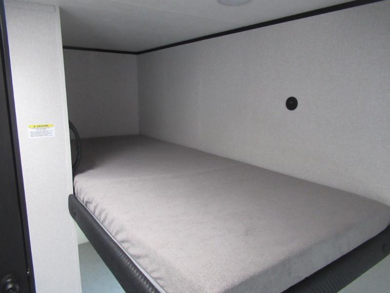 Your crew of five will love camping in this single-axle travel trailer! There are bunk beds in the rear corner and a full bath in the other rear corner for easy nighttime use. You will have the front queen bed to yourselves, along with an overhead shelf and a nightstand/wardrobe for your clothes. The booth dinette provides a place to dine, play games, and even let an extra guest stay over. The Customer Value Package on this Sport Edition model includes a 19K BTU furnace, stabilizer jacks, a power awning, an entry door with a window and shade prep, and many more stand-out features!