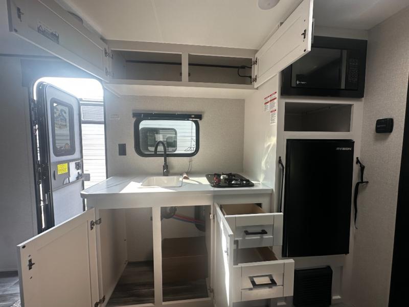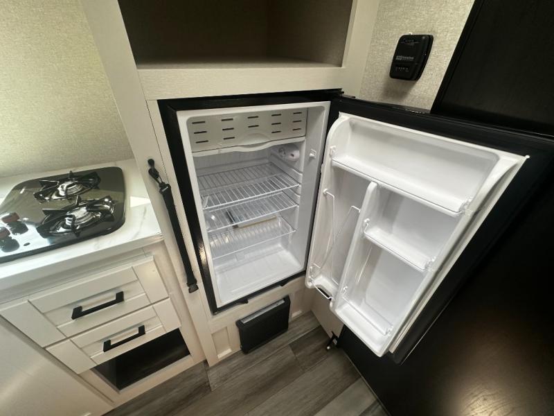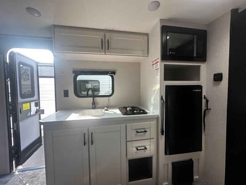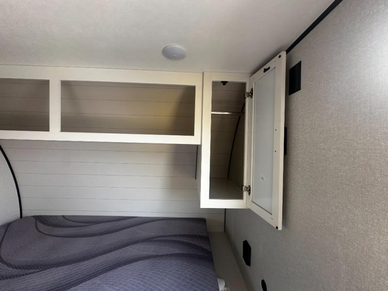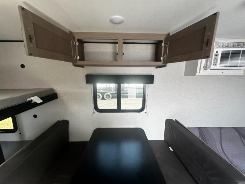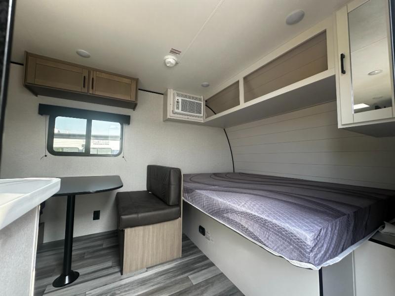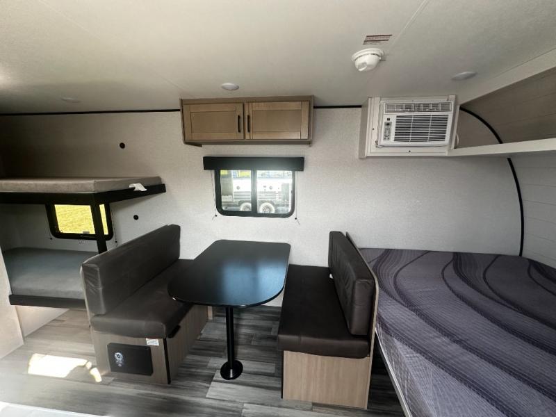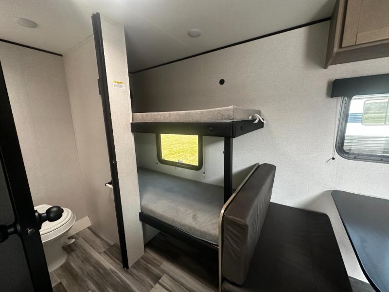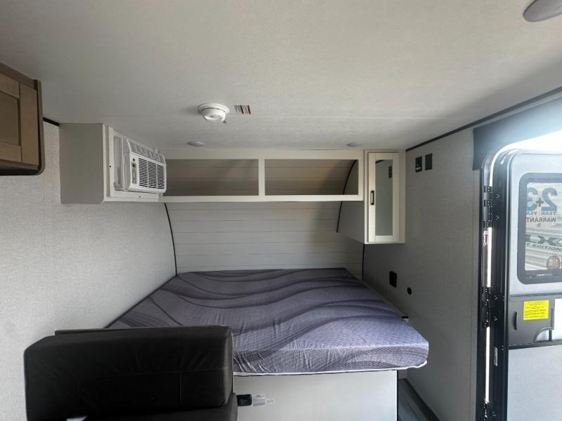 Your crew of five will love camping in this single-axle travel trailer! There are bunk beds in the rear corner and a full bath in the other rear corner for easy nighttime use. You will have the front queen bed to yourselves, along with an overhead shelf and a nightstand/wardrobe for your clothes. The booth dinette provides a place to dine, play games, and even let an extra guest stay over. The Customer Value Package on this Sport Edition model includes a 19K BTU furnace, stabilizer jacks, a power awning, an entry door with a window and shade prep, and many more stand-out features!