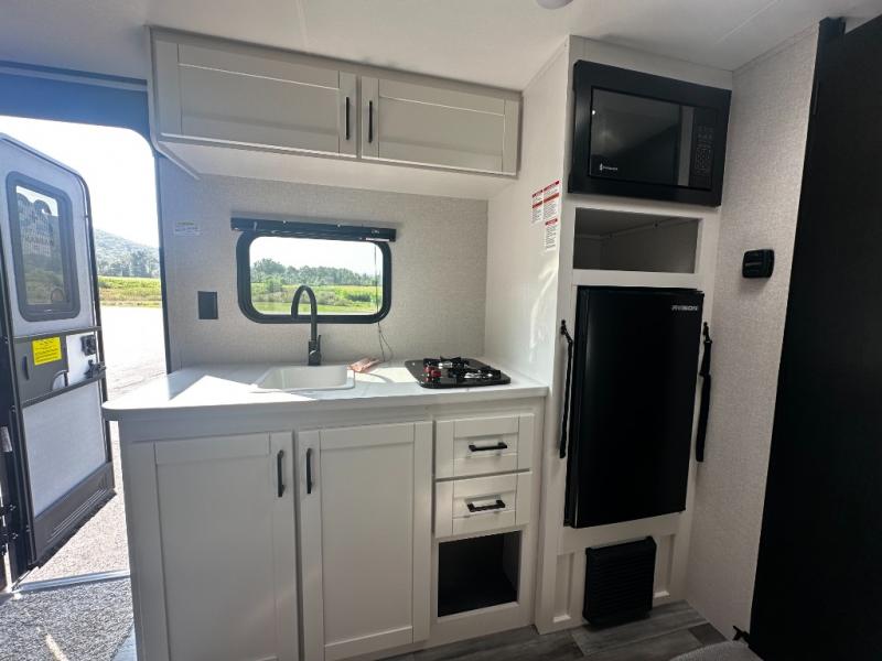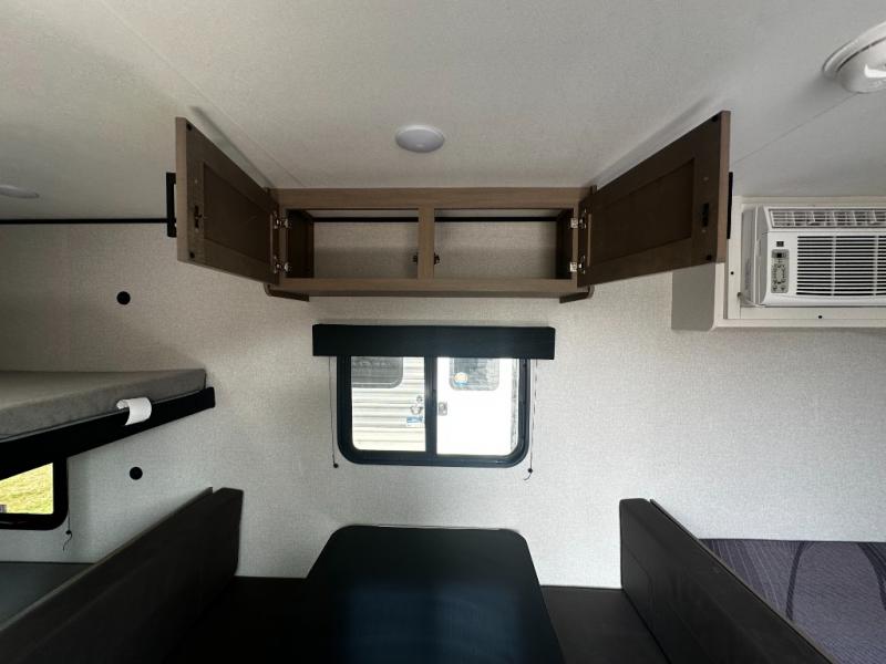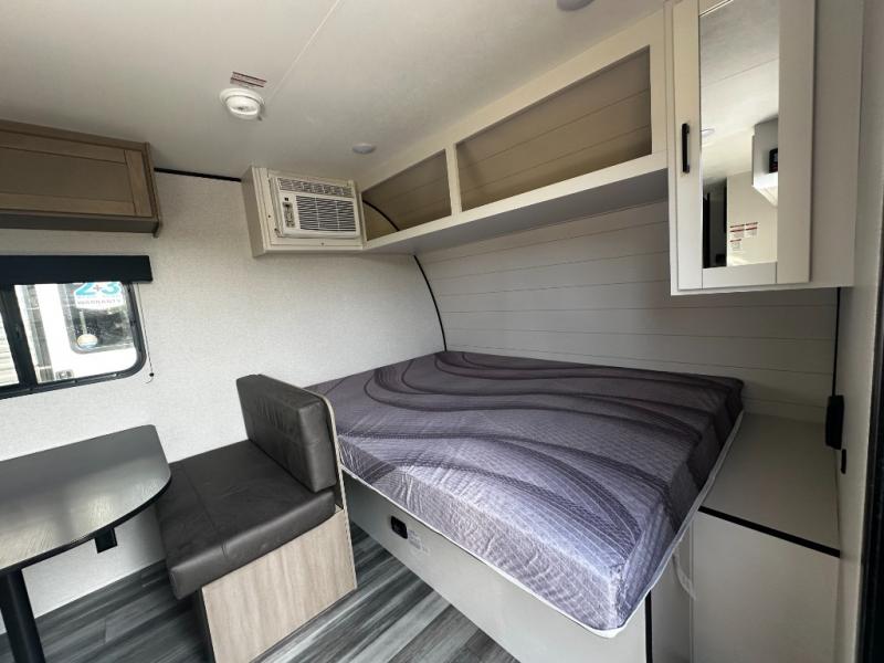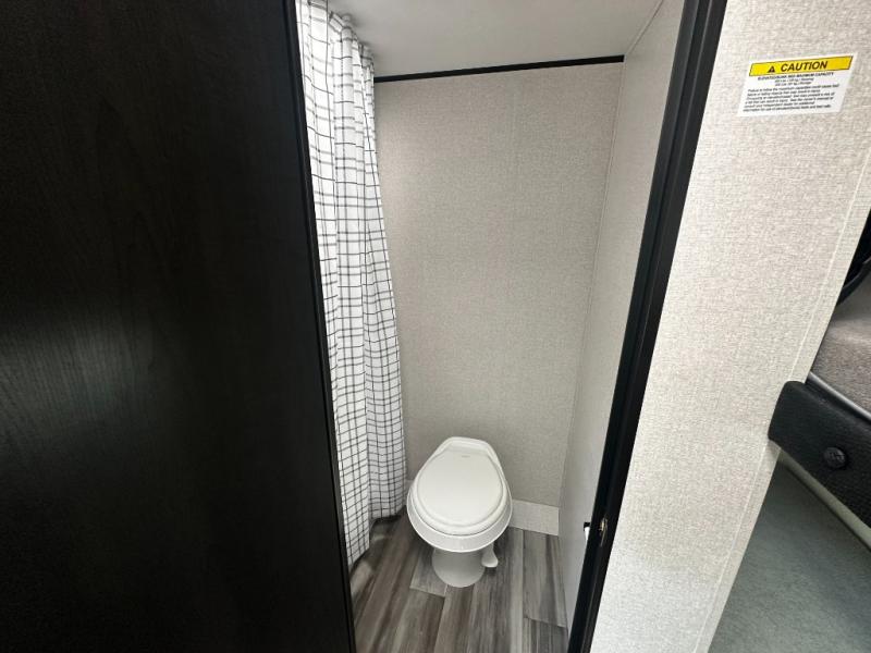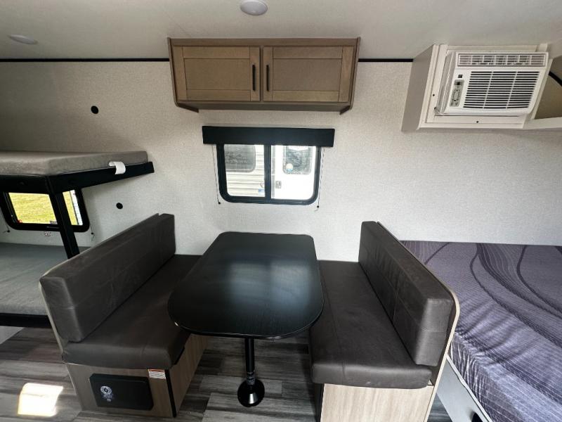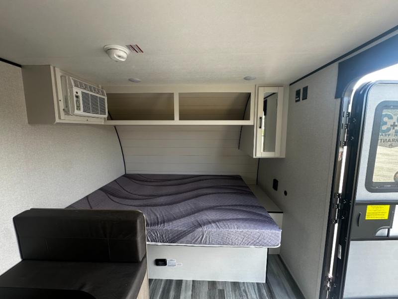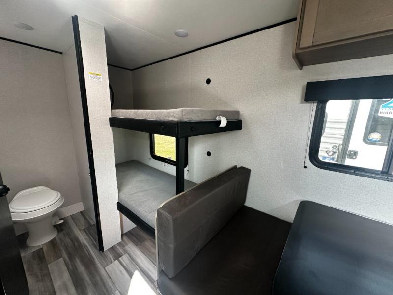 Your crew of five will love camping in this single-axle travel trailer! There are bunk beds in the rear corner and a full bath in the other rear corner for easy nighttime use. You will have the front queen bed to yourselves, along with an overhead shelf and a nightstand/wardrobe for your clothes. The booth dinette provides a place to dine, play games, and even let an extra guest stay over. The Customer Value Package on this Sport Edition model includes a 19K BTU furnace, stabilizer jacks, a power awning, an entry door with a window and shade prep, and many more stand-out features!
