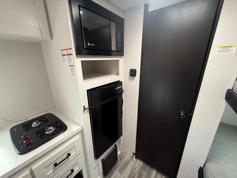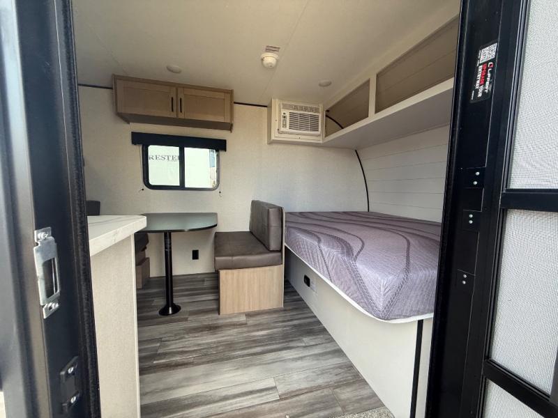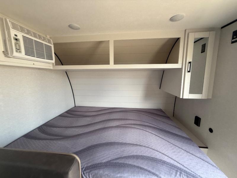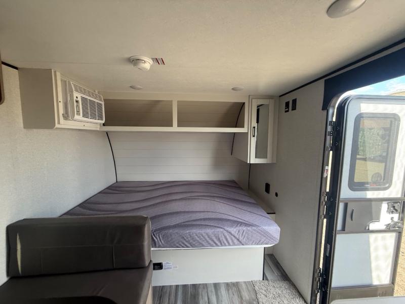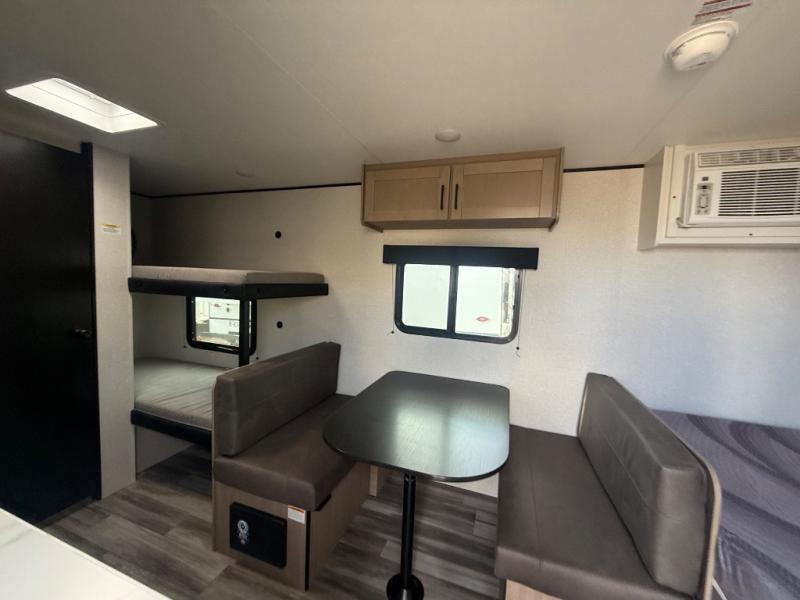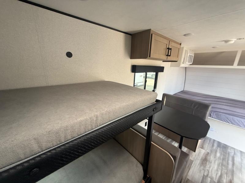 Your crew of five will love camping in this single-axle travel trailer! There are bunk beds in the rear corner and a full bath in the other rear corner for easy nighttime use. You will have the front queen bed to yourselves, along with an overhead shelf and a nightstand/wardrobe for your clothes. The booth dinette provides a place to dine, play games, and even let an extra guest stay over. The Customer Value Package on this Sport Edition model includes a 19K BTU furnace, stabilizer jacks, a power awning, an entry door with a window and shade prep, and many more stand-out features!