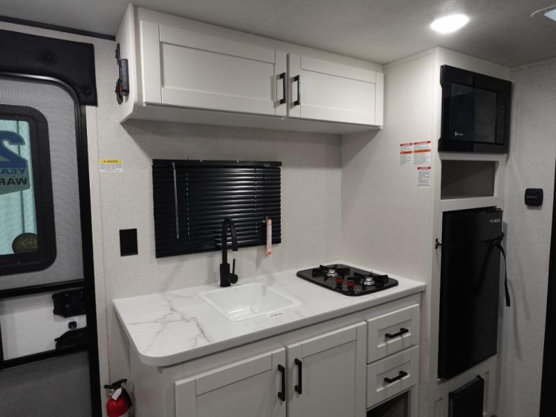 The Jayco Jay Flight SLX travel trailer is quite easy to own because it is lightweight for an easier towing experience. Built on a fully integrated A-frame with galvanized-steel, impact-resistant wheel wells, the Jay Flight SLX has quality at its very foundation. That quality continues on to the electric self-adjusting brakes, easy-lube hubs, Magnum Truss roof system, and LP quick connect. Some of what the mandatory Customer Value Package includes is backup camera prep, Keyed-Alike entry and baggage doors, and an on-demand tankless water heater.