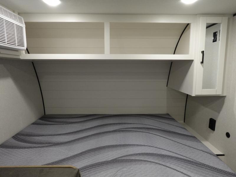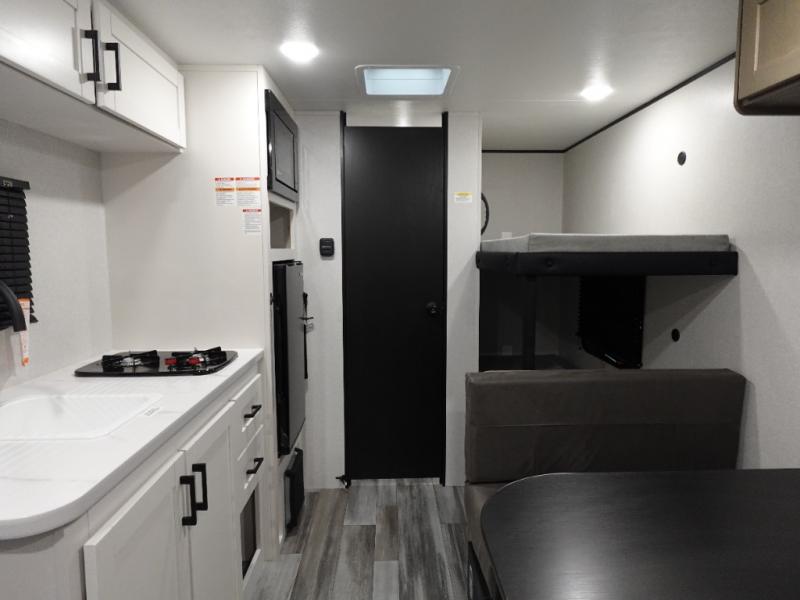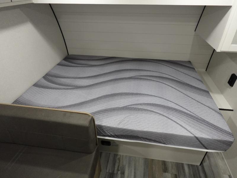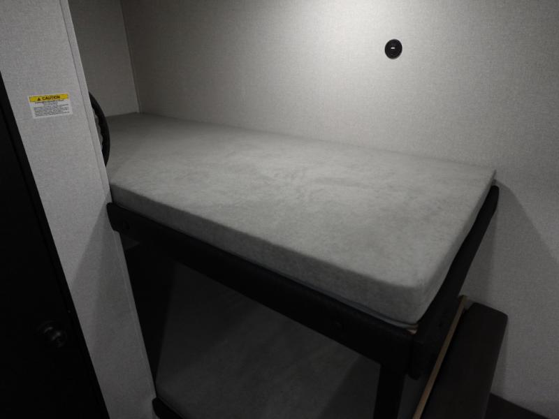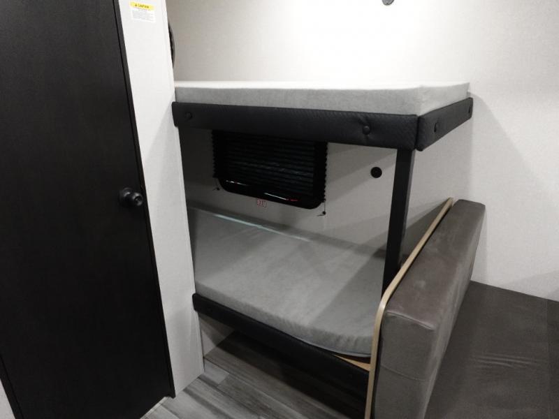 Your crew of five will love camping in this single-axle travel trailer! There are bunk beds in the rear corner and a full bath in the other rear corner for easy nighttime use. You will have the front queen bed to yourselves, along with an overhead shelf and a nightstand/wardrobe for your clothes. The booth dinette provides a place to dine, play games, and even let an extra guest stay over. The Customer Value Package on this Sport Edition model includes a 19K BTU furnace, stabilizer jacks, a power awning, an entry door with a window and shade prep, and many more stand-out features!