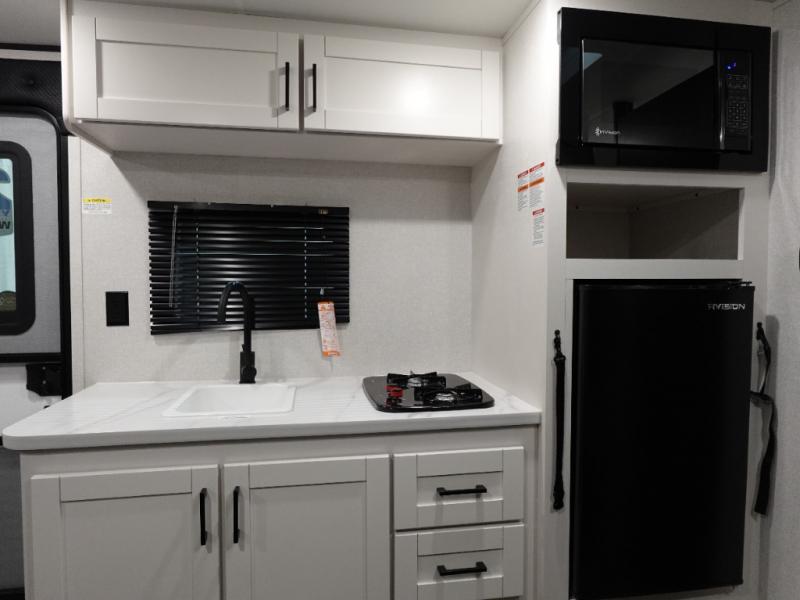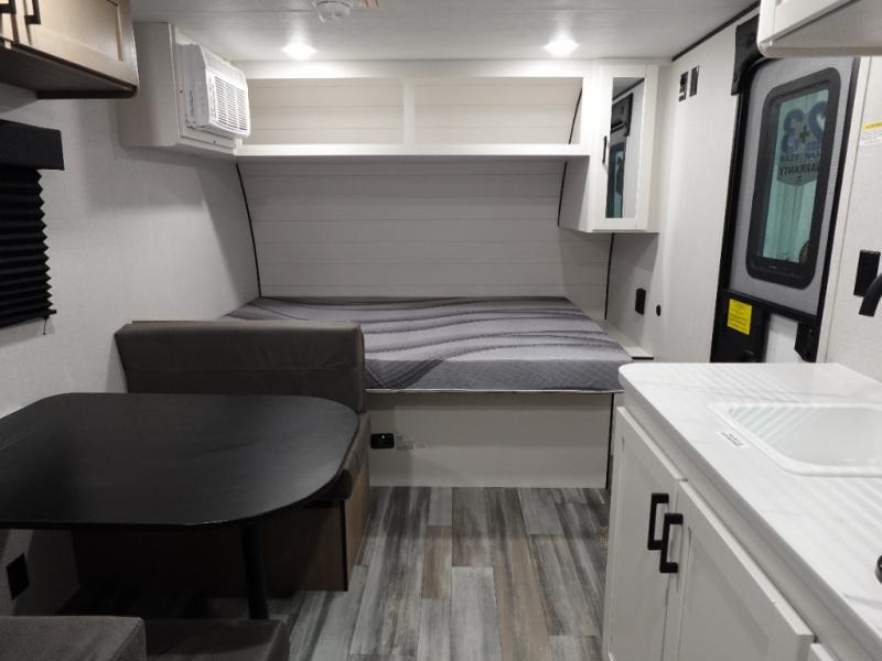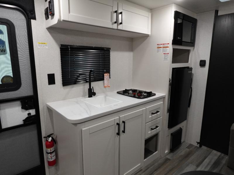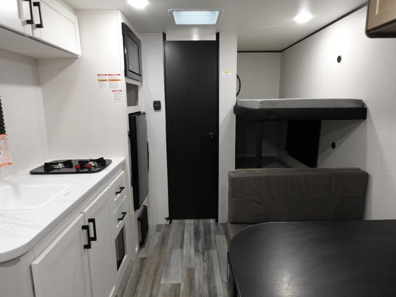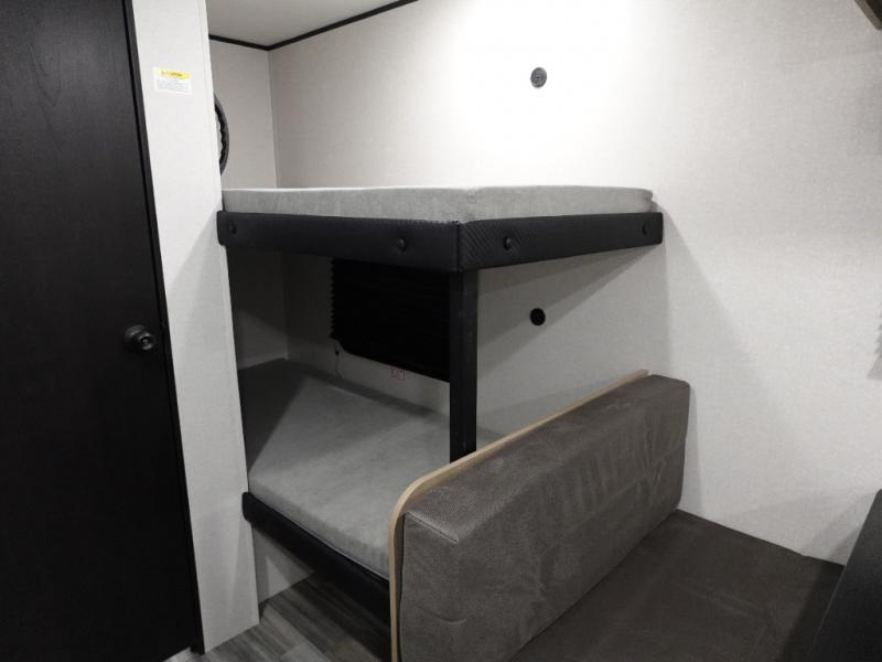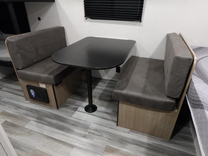 Your crew of five will love camping in this single-axle travel trailer! There are bunk beds in the rear corner and a full bath in the other rear corner for easy nighttime use. You will have the front queen bed to yourselves, along with an overhead shelf and a nightstand/wardrobe for your clothes. The booth dinette provides a place to dine, play games, and even let an extra guest stay over. The Customer Value Package on this Sport Edition model includes a 19K BTU furnace, stabilizer jacks, a power awning, an entry door with a window and shade prep, and many more stand-out features!