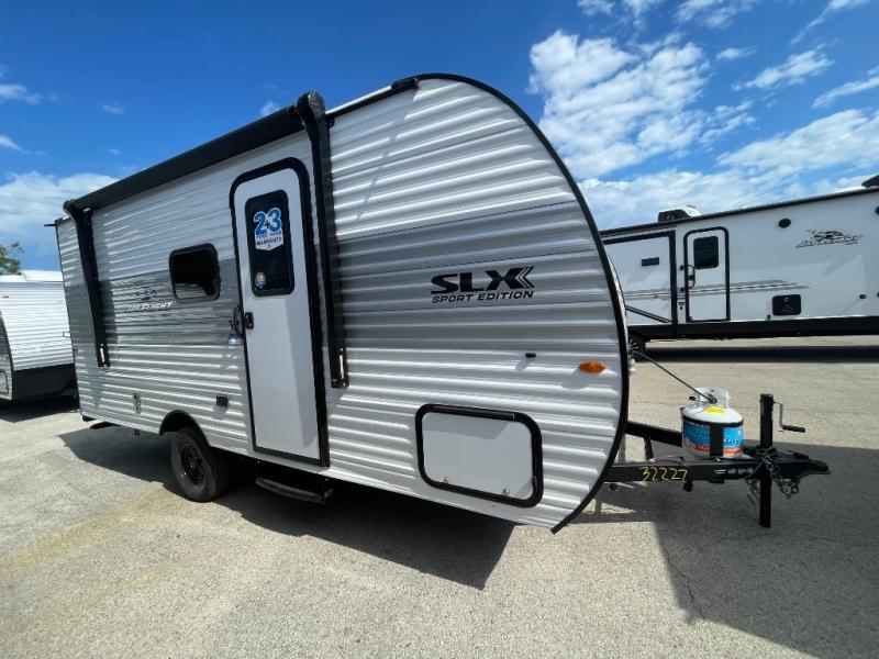 The Jayco Jay Flight SLX travel trailer is quite easy to own because it is lightweight for an easier towing experience. Built on a fully integrated A-frame with galvanized-steel, impact-resistant wheel wells, the Jay Flight SLX has quality at its very foundation. That quality continues on to the electric self-adjusting brakes, easy-lube hubs, Magnum Truss roof system, and LP quick connect. Some of what the mandatory Customer Value Package includes is backup camera prep, Keyed-Alike entry and baggage doors, and an on-demand tankless water heater.