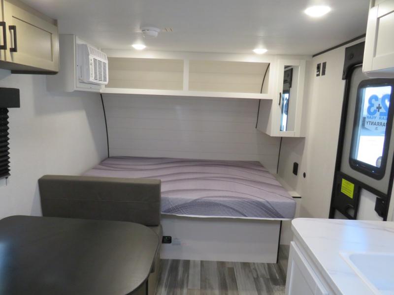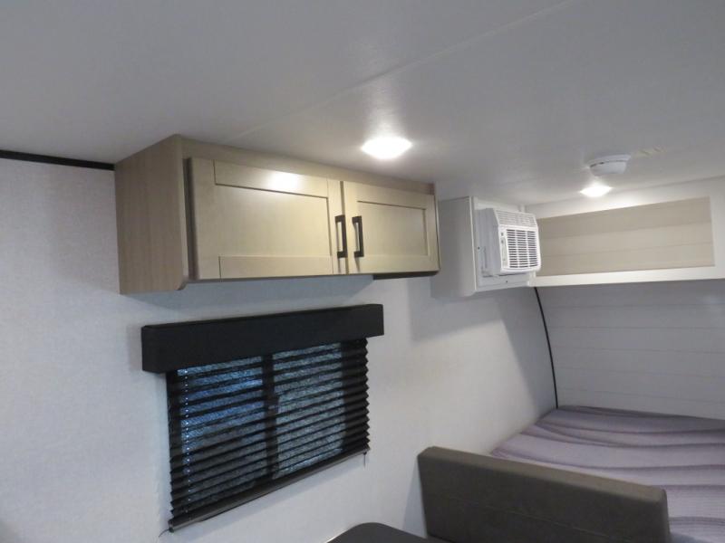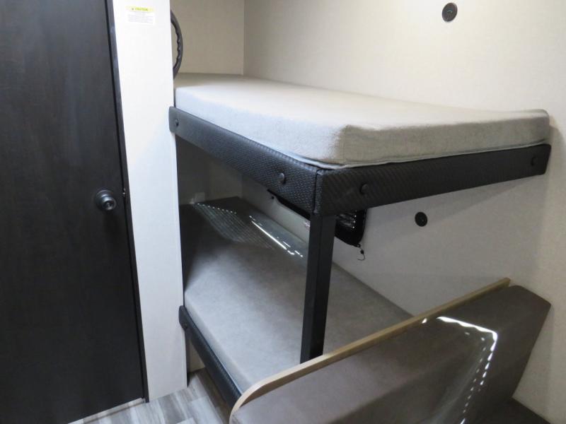 Your crew of five will love camping in this single-axle travel trailer! There are bunk beds in the rear corner and a full bath in the other rear corner for easy nighttime use. You will have the front queen bed to yourselves, along with an overhead shelf and a nightstand/wardrobe for your clothes. The booth dinette provides a place to dine, play games, and even let an extra guest stay over. The Customer Value Package on this Sport Edition model includes a 19K BTU furnace, stabilizer jacks, a power awning, an entry door with a window and shade prep, and many more stand-out features!