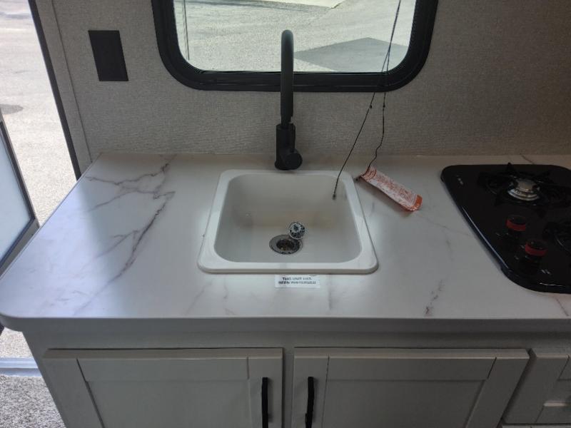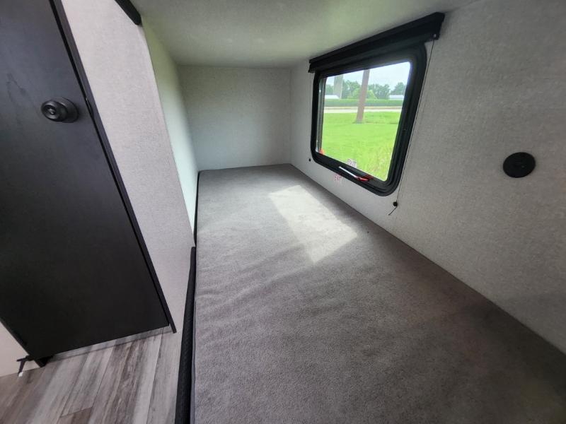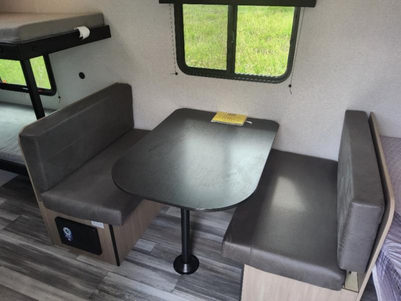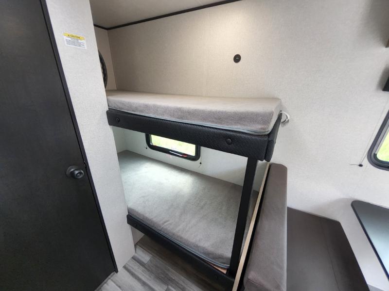 Your crew of five will love camping in this single-axle travel trailer! There are bunk beds in the rear corner and a full bath in the other rear corner for easy nighttime use. You will have the front queen bed to yourselves, along with an overhead shelf and a nightstand/wardrobe for your clothes. The booth dinette provides a place to dine, play games, and even let an extra guest stay over. The Customer Value Package on this Sport Edition model includes a 19K BTU furnace, stabilizer jacks, a power awning, an entry door with a window and shade prep, and many more stand-out features!