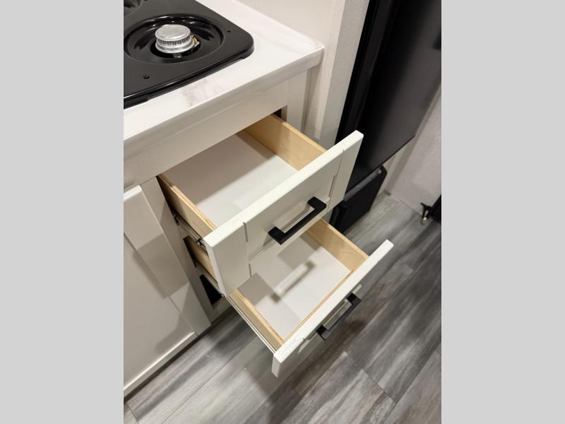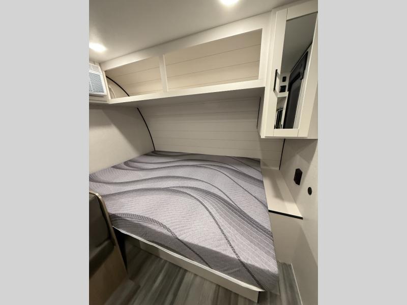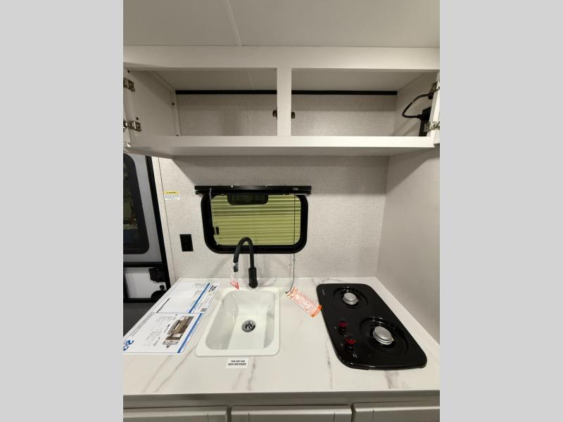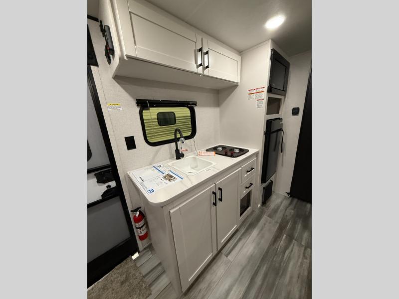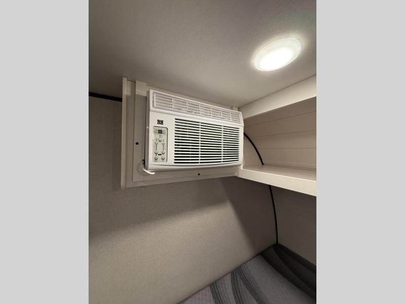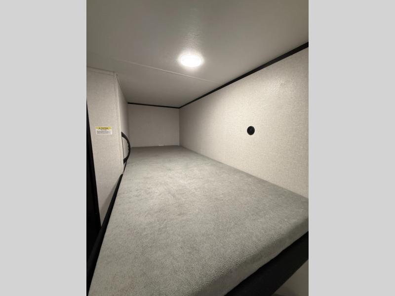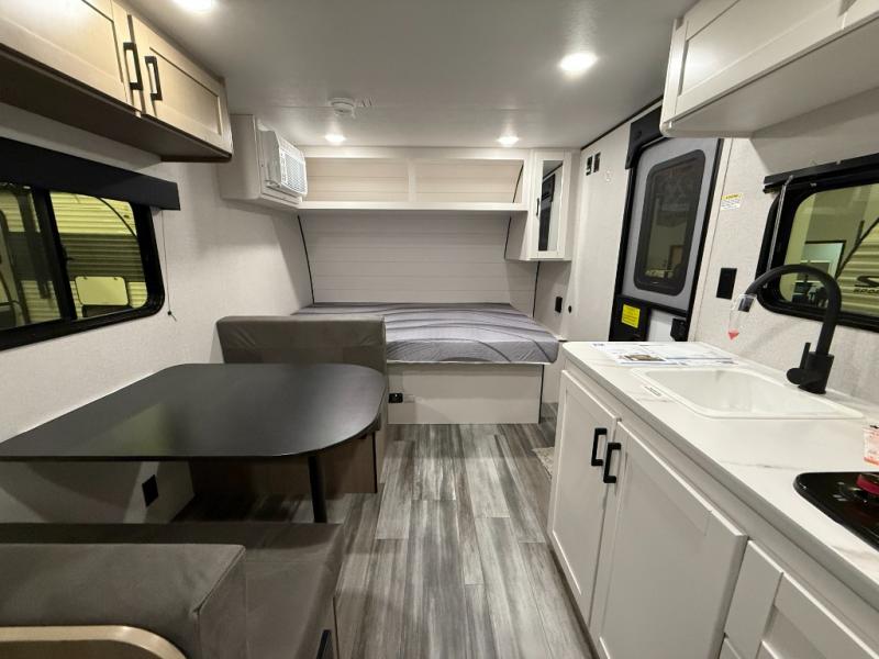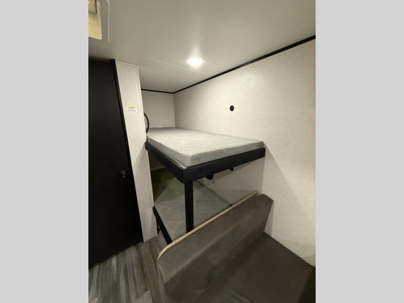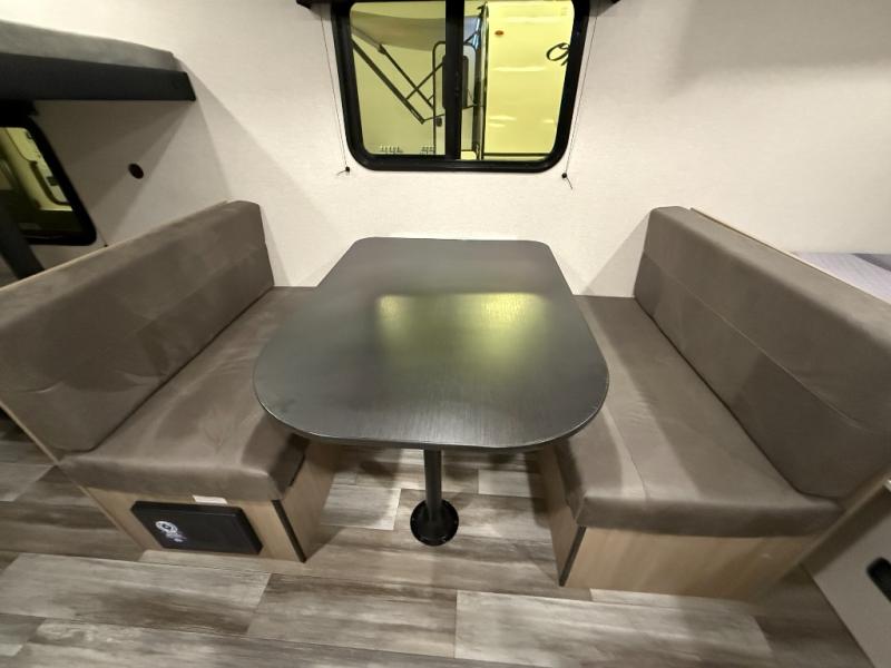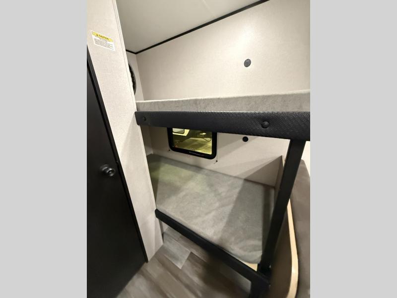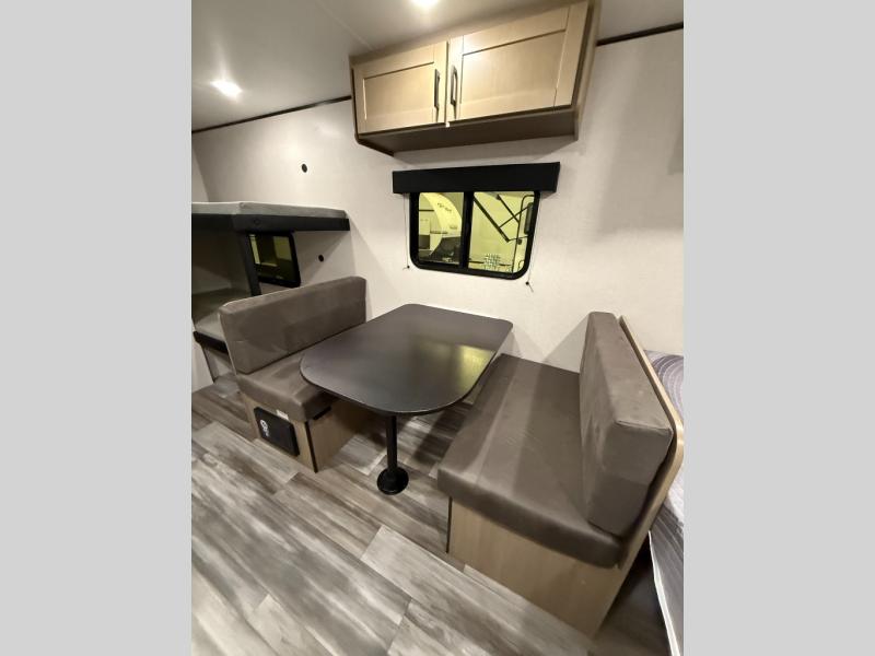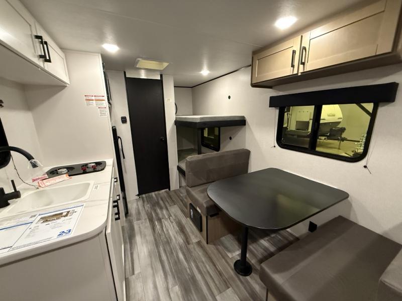 Your crew of five will love camping in this single-axle travel trailer! There are bunk beds in the rear corner and a full bath in the other rear corner for easy nighttime use. You will have the front queen bed to yourselves, along with an overhead shelf and a nightstand/wardrobe for your clothes. The booth dinette provides a place to dine, play games, and even let an extra guest stay over. The Customer Value Package on this Sport Edition model includes a 19K BTU furnace, stabilizer jacks, a power awning, an entry door with a window and shade prep, and many more stand-out features!