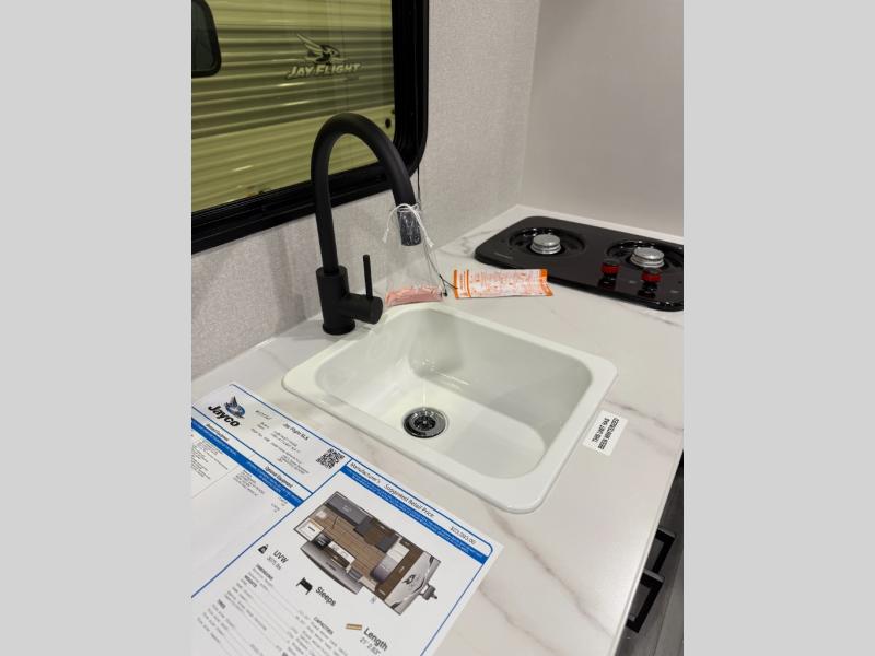 The Jayco Jay Flight SLX travel trailer is quite easy to own because it is lightweight for an easier towing experience. Built on a fully integrated A-frame with galvanized-steel, impact-resistant wheel wells, the Jay Flight SLX has quality at its very foundation. That quality continues on to the electric self-adjusting brakes, easy-lube hubs, Magnum Truss roof system, and LP quick connect. Some of what the mandatory Customer Value Package includes is backup camera prep, Keyed-Alike entry and baggage doors, and an on-demand tankless water heater.