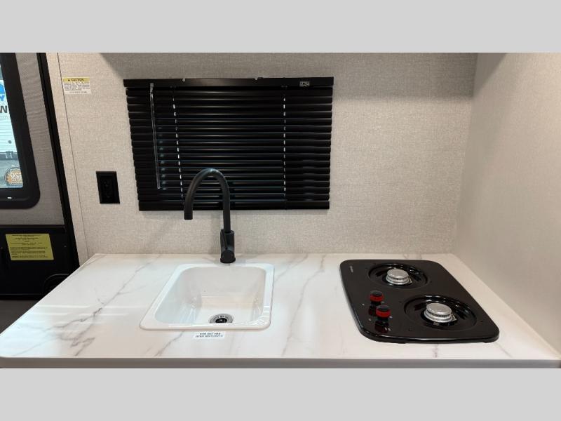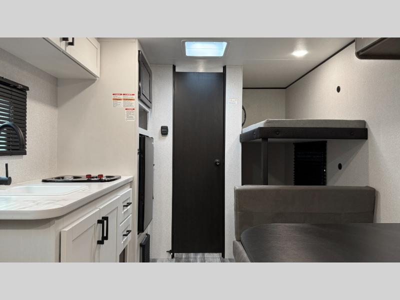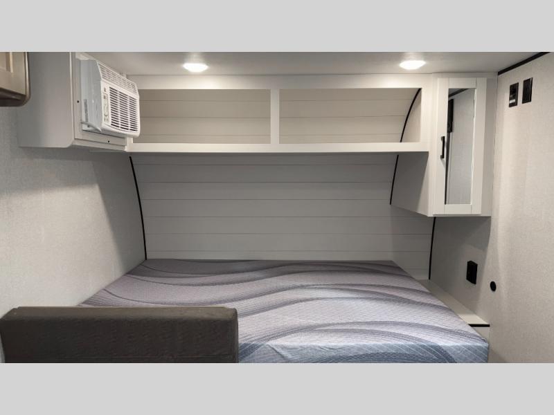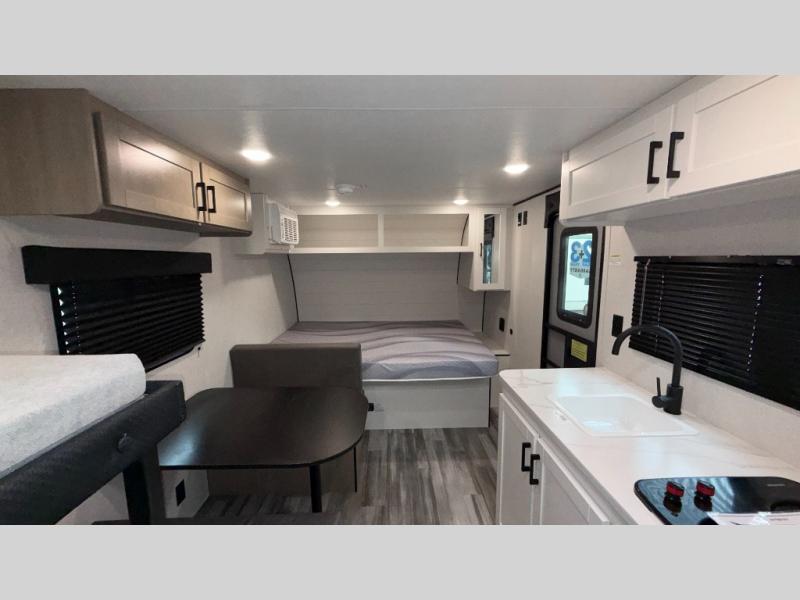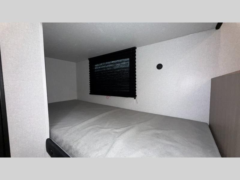 Your crew of five will love camping in this single-axle travel trailer! There are bunk beds in the rear corner and a full bath in the other rear corner for easy nighttime use. You will have the front queen bed to yourselves, along with an overhead shelf and a nightstand/wardrobe for your clothes. The booth dinette provides a place to dine, play games, and even let an extra guest stay over. The Customer Value Package on this Sport Edition model includes a 19K BTU furnace, stabilizer jacks, a power awning, an entry door with a window and shade prep, and many more stand-out features!
