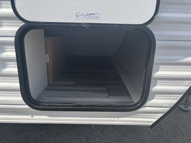 The Jayco Jay Flight SLX travel trailer is quite easy to own because it is lightweight for an easier towing experience. Built on a fully integrated A-frame with galvanized-steel, impact-resistant wheel wells, the Jay Flight SLX has quality at its very foundation. That quality continues on to the electric self-adjusting brakes, easy-lube hubs, Magnum Truss roof system, and LP quick connect. Some of what the mandatory Customer Value Package includes is backup camera prep, Keyed-Alike entry and baggage doors, and an on-demand tankless water heater.