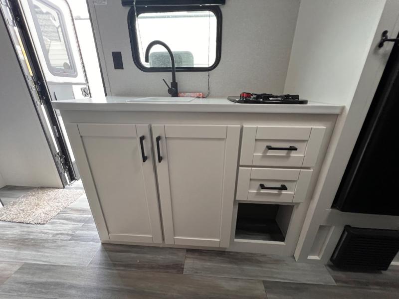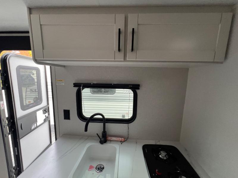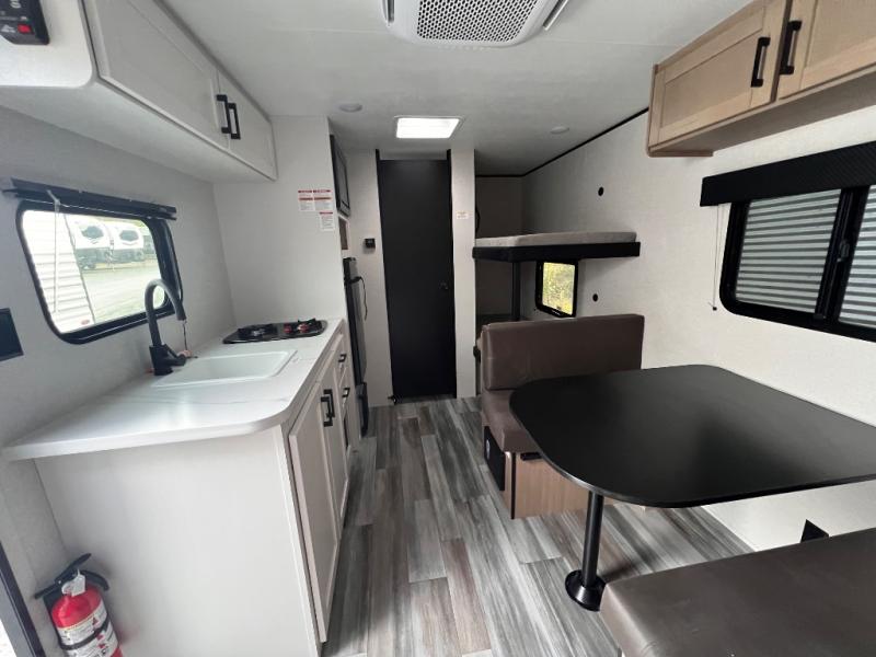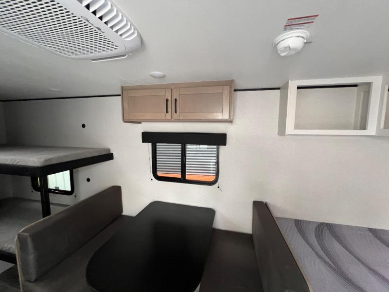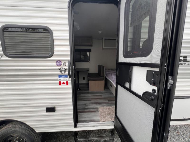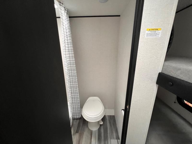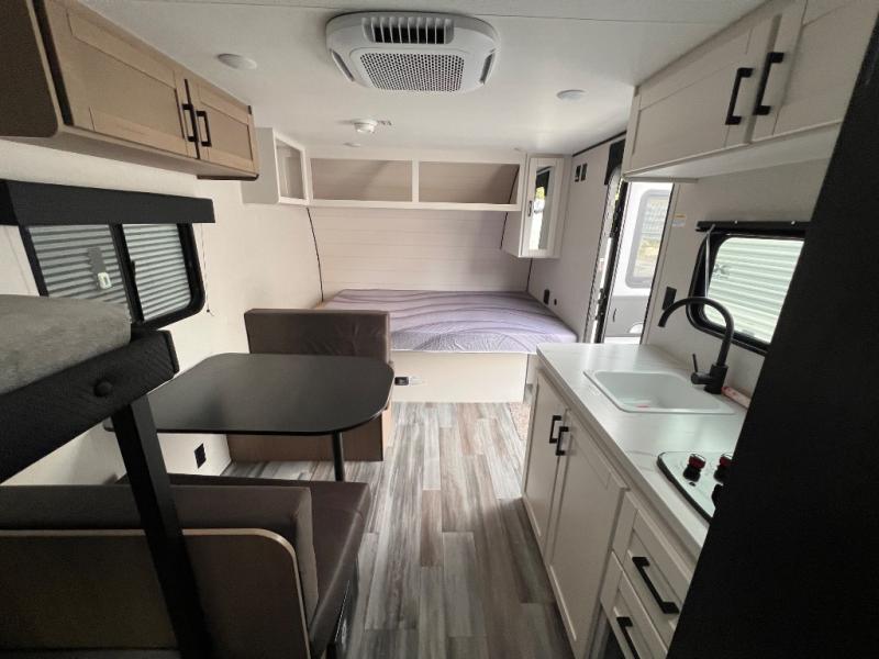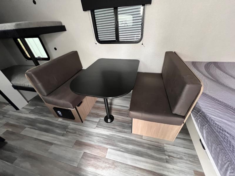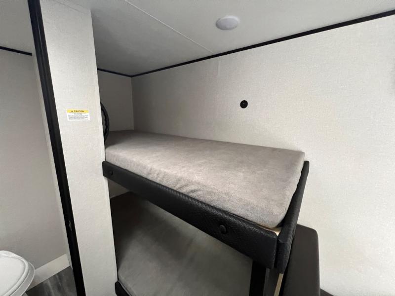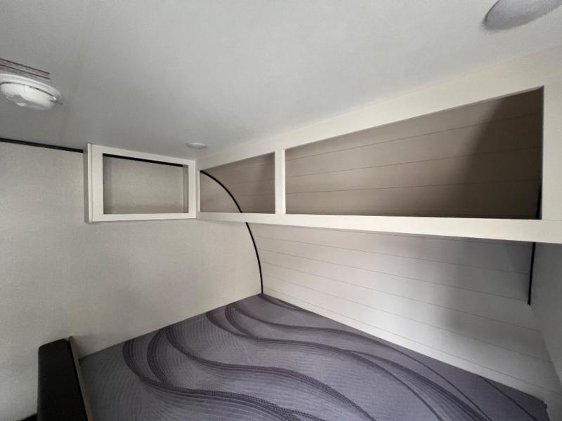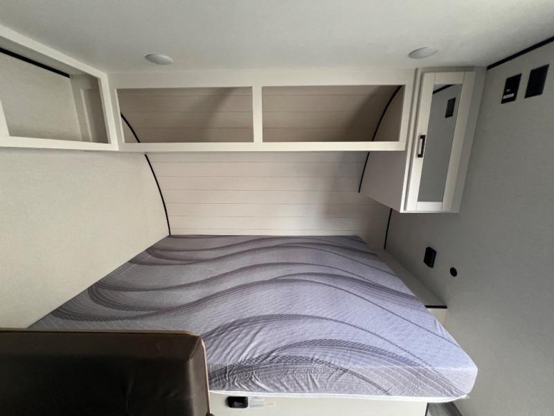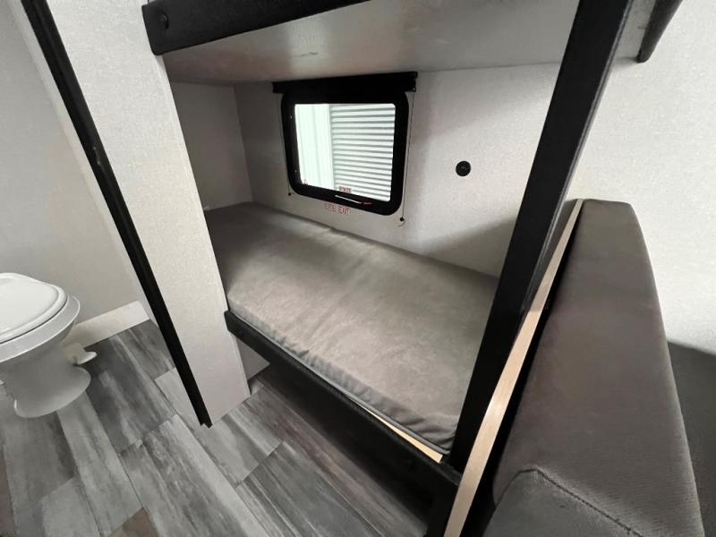 Your crew of five will love camping in this single-axle travel trailer! There are bunk beds in the rear corner and a full bath in the other rear corner for easy nighttime use. You will have the front queen bed to yourselves, along with an overhead shelf and a nightstand/wardrobe for your clothes. The booth dinette provides a place to dine, play games, and even let an extra guest stay over. The Customer Value Package on this Sport Edition model includes a 19K BTU furnace, stabilizer jacks, a power awning, an entry door with a window and shade prep, and many more stand-out features!