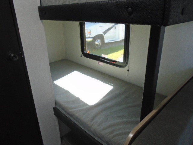 Your crew of five will love camping in this single-axle travel trailer! There are bunk beds in the rear corner and a full bath in the other rear corner for easy nighttime use. You will have the front queen bed to yourselves, along with an overhead shelf and a nightstand/wardrobe for your clothes. The booth dinette provides a place to dine, play games, and even let an extra guest stay over. The Customer Value Package on this Sport Edition model includes a 19K BTU furnace, stabilizer jacks, a power awning, an entry door with a window and shade prep, and many more stand-out features!