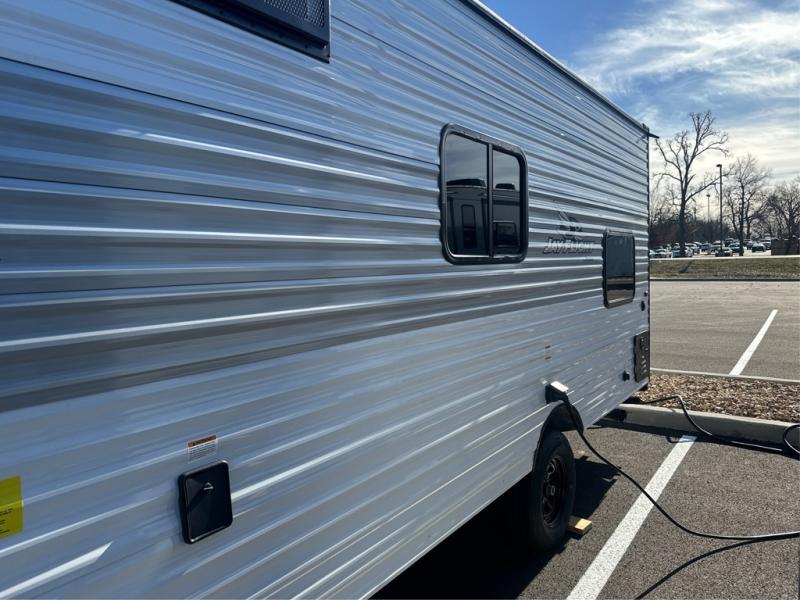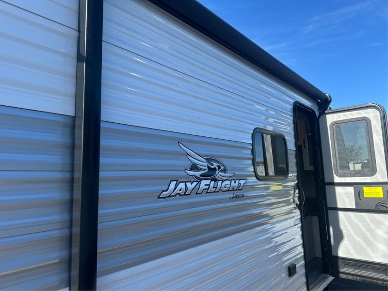 The Jayco Jay Flight SLX travel trailer is quite easy to own because it is lightweight for an easier towing experience. Built on a fully integrated A-frame with galvanized-steel, impact-resistant wheel wells, the Jay Flight SLX has quality at its very foundation. That quality continues on to the electric self-adjusting brakes, easy-lube hubs, Magnum Truss roof system, and LP quick connect. Some of what the mandatory Customer Value Package includes is backup camera prep, Keyed-Alike entry and baggage doors, and an on-demand tankless water heater.