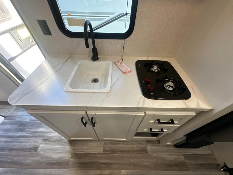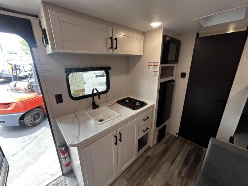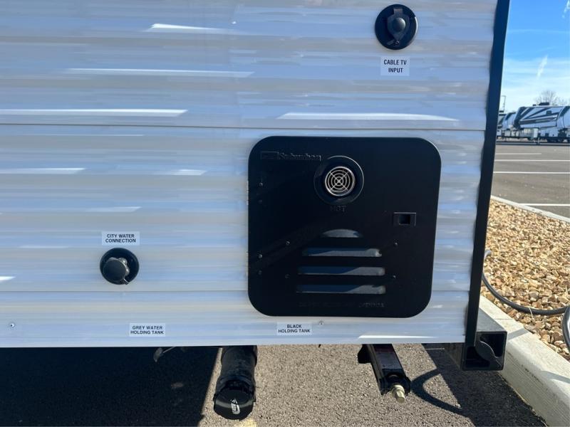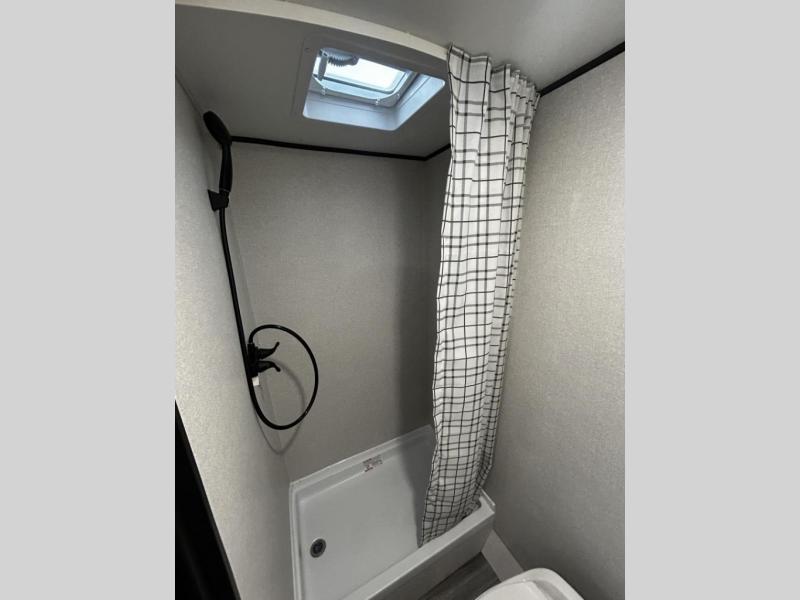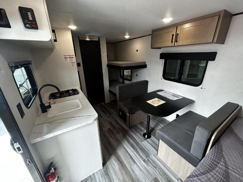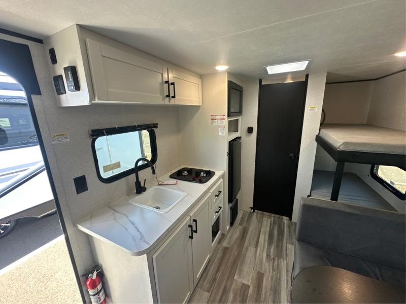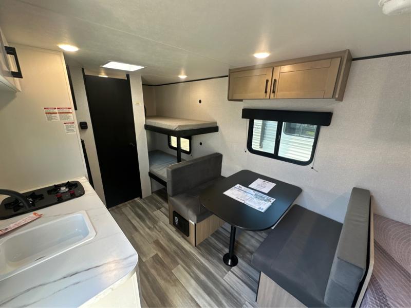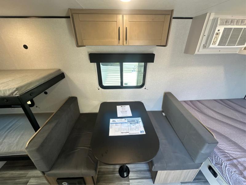 Your crew of five will love camping in this single-axle travel trailer! There are bunk beds in the rear corner and a full bath in the other rear corner for easy nighttime use. You will have the front queen bed to yourselves, along with an overhead shelf and a nightstand/wardrobe for your clothes. The booth dinette provides a place to dine, play games, and even let an extra guest stay over. The Customer Value Package on this Sport Edition model includes a 19K BTU furnace, stabilizer jacks, a power awning, an entry door with a window and shade prep, and many more stand-out features!