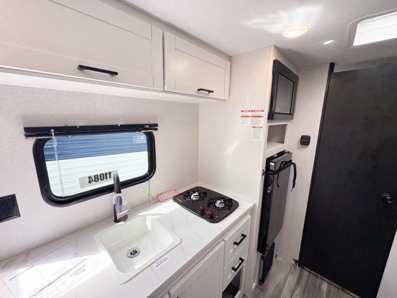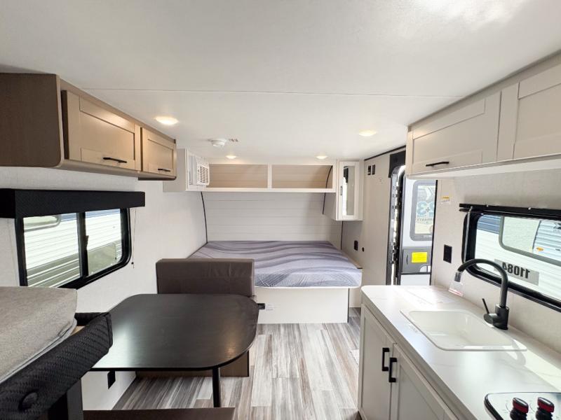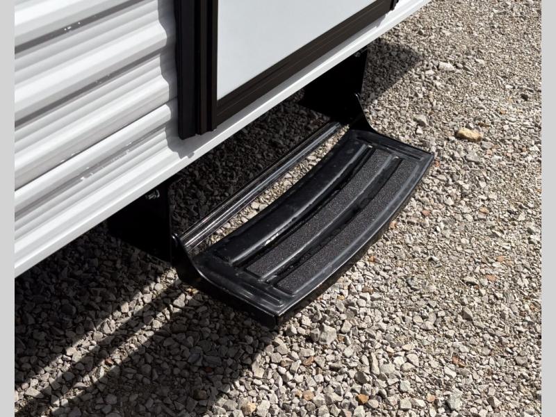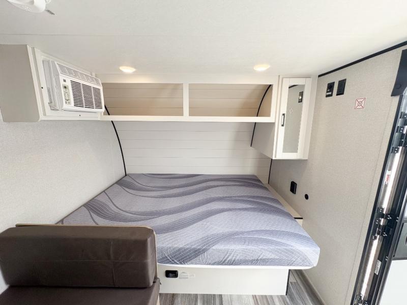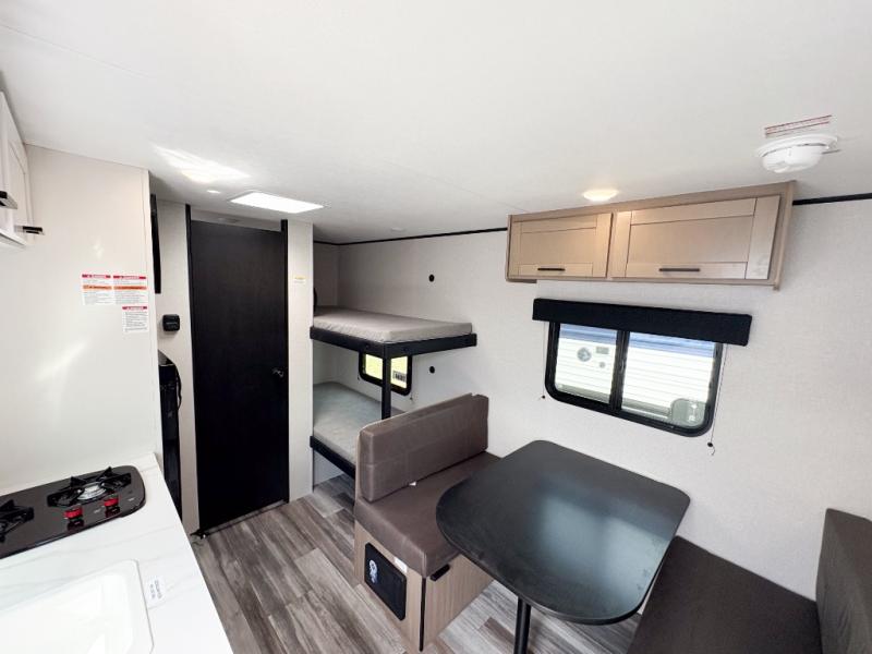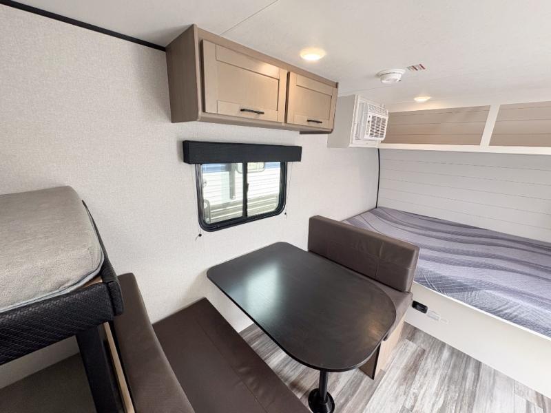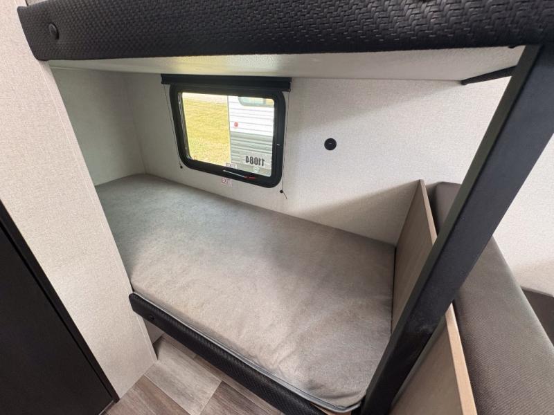 Your crew of five will love camping in this single-axle travel trailer! There are bunk beds in the rear corner and a full bath in the other rear corner for easy nighttime use. You will have the front queen bed to yourselves, along with an overhead shelf and a nightstand/wardrobe for your clothes. The booth dinette provides a place to dine, play games, and even let an extra guest stay over. The Customer Value Package on this Sport Edition model includes a 19K BTU furnace, stabilizer jacks, a power awning, an entry door with a window and shade prep, and many more stand-out features!