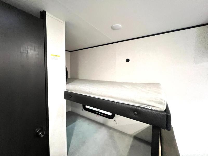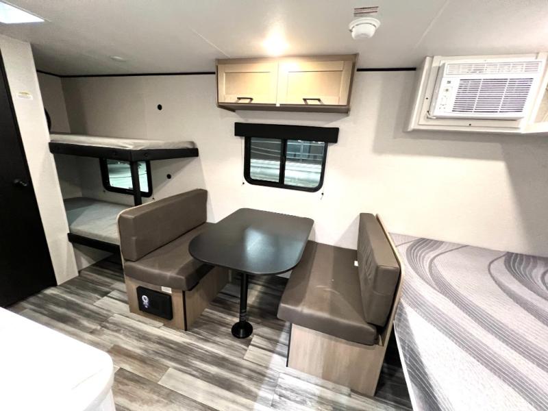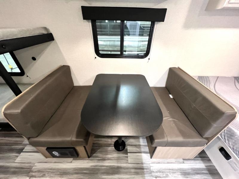 Your crew of five will love camping in this single-axle travel trailer! There are bunk beds in the rear corner and a full bath in the other rear corner for easy nighttime use. You will have the front queen bed to yourselves, along with an overhead shelf and a nightstand/wardrobe for your clothes. The booth dinette provides a place to dine, play games, and even let an extra guest stay over. The Customer Value Package on this Sport Edition model includes a 19K BTU furnace, stabilizer jacks, a power awning, an entry door with a window and shade prep, and many more stand-out features!