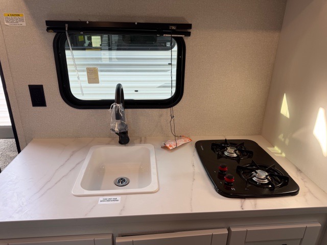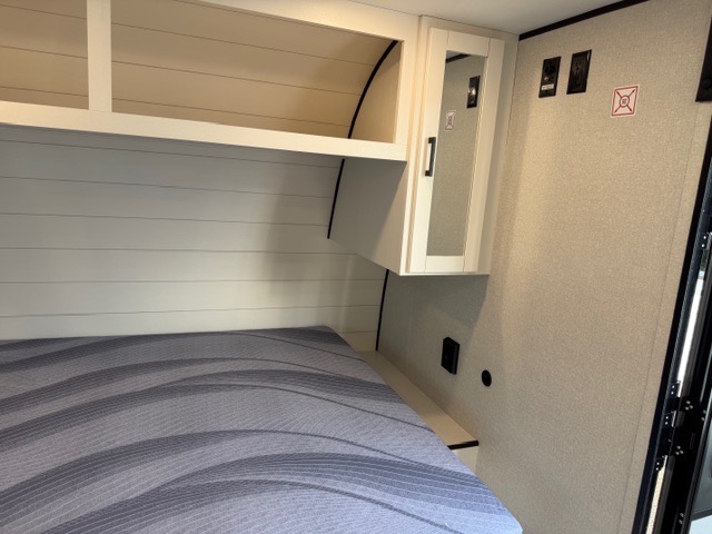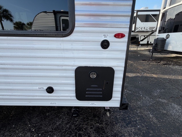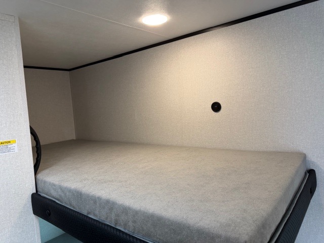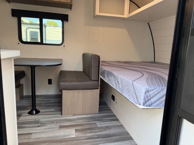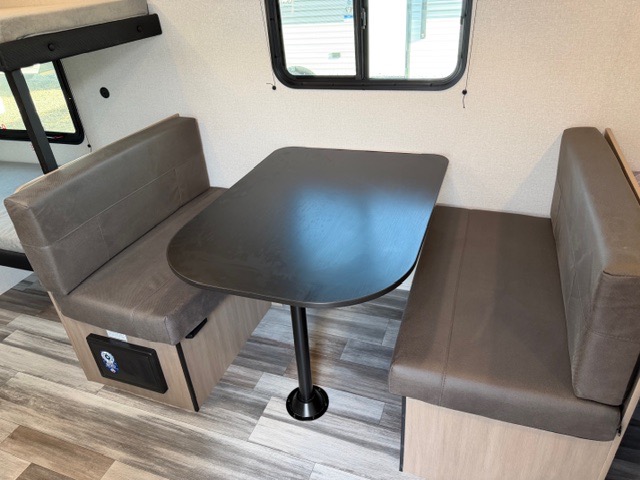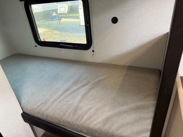 Your crew of five will love camping in this single-axle travel trailer! There are bunk beds in the rear corner and a full bath in the other rear corner for easy nighttime use. You will have the front queen bed to yourselves, along with an overhead shelf and a nightstand/wardrobe for your clothes. The booth dinette provides a place to dine, play games, and even let an extra guest stay over. The Customer Value Package on this Sport Edition model includes a 19K BTU furnace, stabilizer jacks, a power awning, an entry door with a window and shade prep, and many more stand-out features!