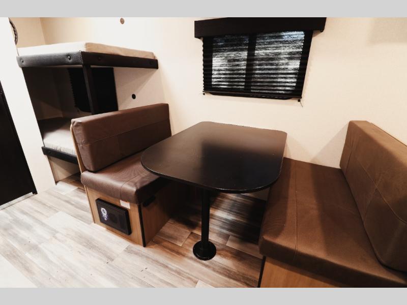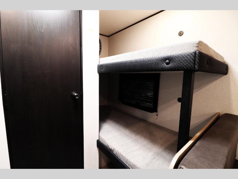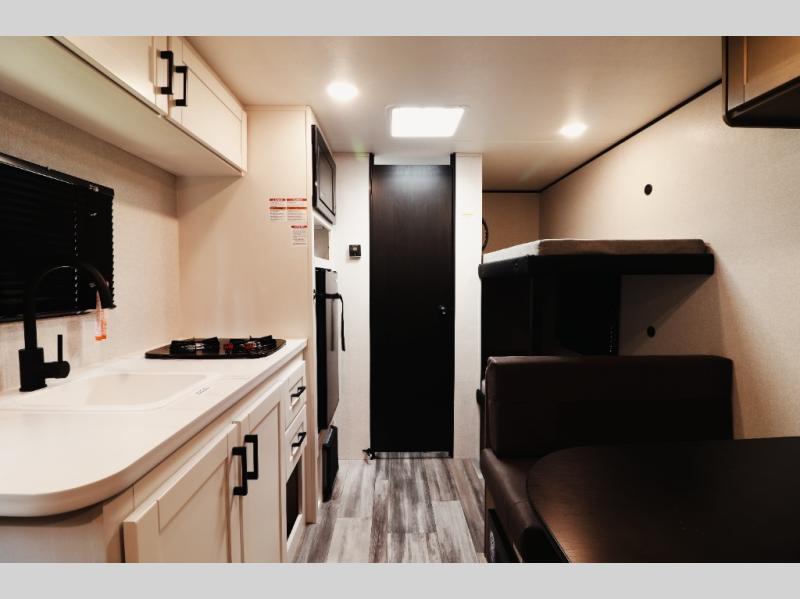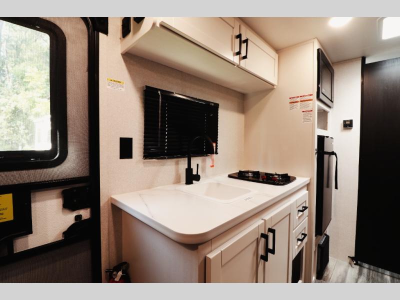 The 2026 Jay Flight SLX 170BH Sport delivers smart space utilization with a comfortable front queen bed, rear bunk beds for kids or guests, a convertible dinette for extra sleeping space, and a fully equipped kitchen that lets you cook anywhere your travels take you. Despite its compact footprint, this model provides the essentials modern travelers demand, making it one of the best entry-level travel trailers for buyers who want reliability, efficiency, and value in a single package.