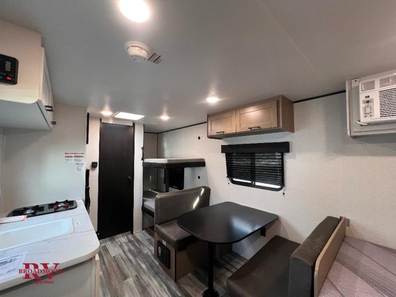 Your crew of five will love camping in this single-axle travel trailer! There are bunk beds in the rear corner and a full bath in the other rear corner for easy nighttime use. You will have the front queen bed to yourselves, along with an overhead shelf and a nightstand/wardrobe for your clothes. The booth dinette provides a place to dine, play games, and even let an extra guest stay over. The Customer Value Package on this Sport Edition model includes a 19K BTU furnace, stabilizer jacks, a power awning, an entry door with a window and shade prep, and many more stand-out features!
