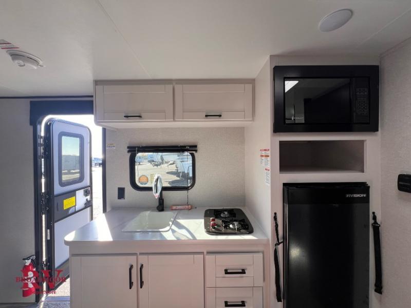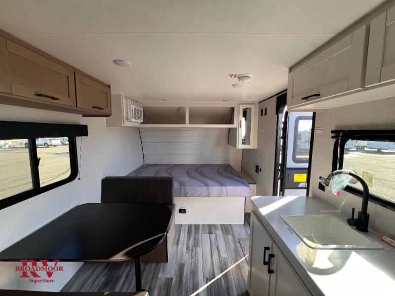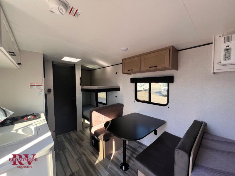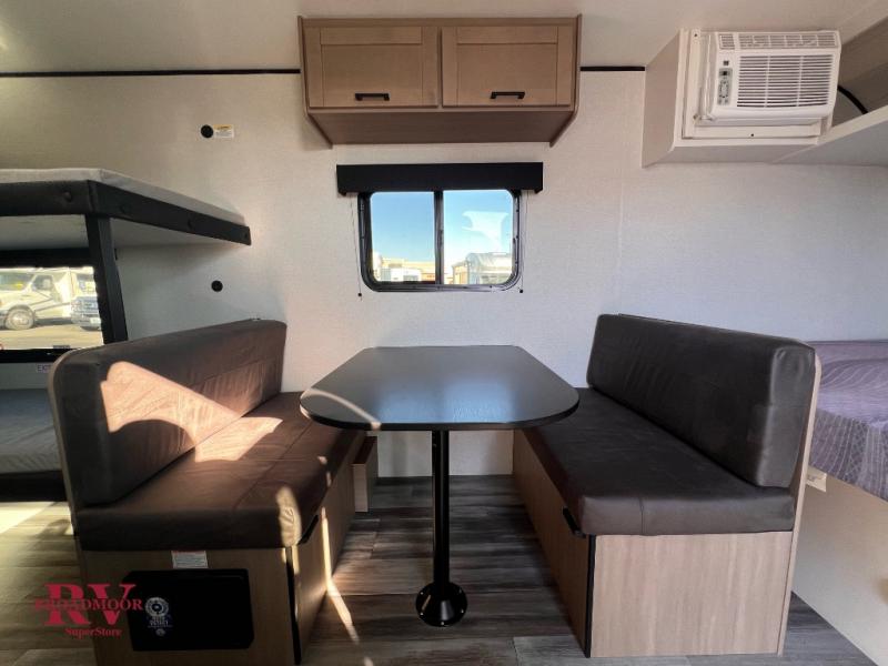 Your crew of five will love camping in this single-axle travel trailer! There are bunk beds in the rear corner and a full bath in the other rear corner for easy nighttime use. You will have the front queen bed to yourselves, along with an overhead shelf and a nightstand/wardrobe for your clothes. The booth dinette provides a place to dine, play games, and even let an extra guest stay over. The Customer Value Package on this Sport Edition model includes a 19K BTU furnace, stabilizer jacks, a power awning, an entry door with a window and shade prep, and many more stand-out features!