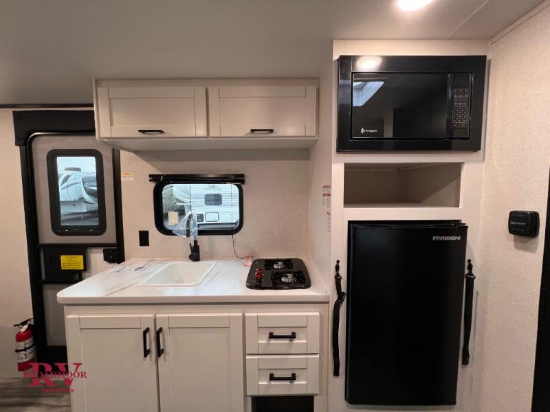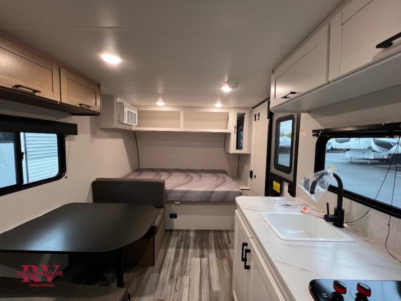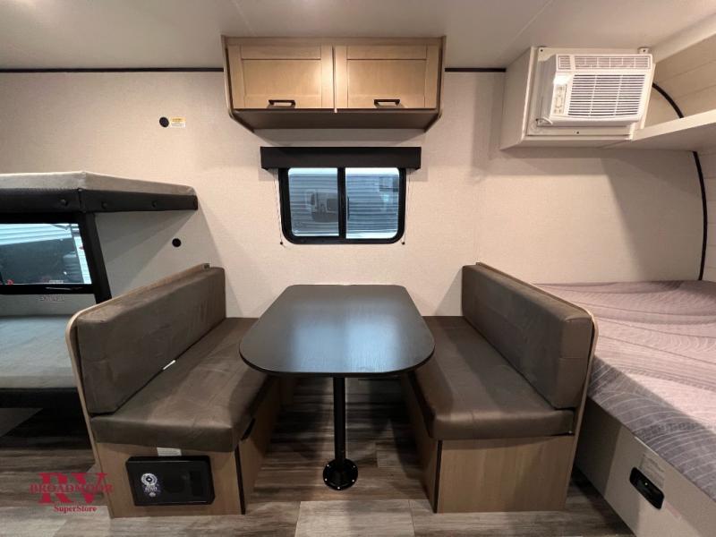 Your crew of five will love camping in this single-axle travel trailer! There are bunk beds in the rear corner and a full bath in the other rear corner for easy nighttime use. You will have the front queen bed to yourselves, along with an overhead shelf and a nightstand/wardrobe for your clothes. The booth dinette provides a place to dine, play games, and even let an extra guest stay over. The Customer Value Package on this Sport Edition model includes a 19K BTU furnace, stabilizer jacks, a power awning, an entry door with a window and shade prep, and many more stand-out features!