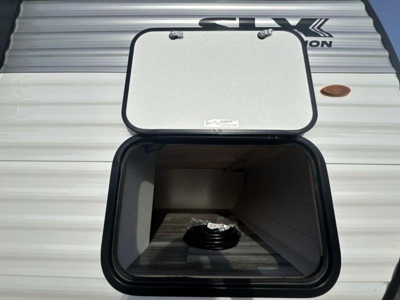 The Jayco Jay Flight SLX travel trailer is quite easy to own because it is lightweight for an easier towing experience. Built on a fully integrated A-frame with galvanized-steel, impact-resistant wheel wells, the Jay Flight SLX has quality at its very foundation. That quality continues on to the electric self-adjusting brakes, easy-lube hubs, Magnum Truss roof system, and LP quick connect. Some of what the mandatory Customer Value Package includes is backup camera prep, Keyed-Alike entry and baggage doors, and an on-demand tankless water heater.