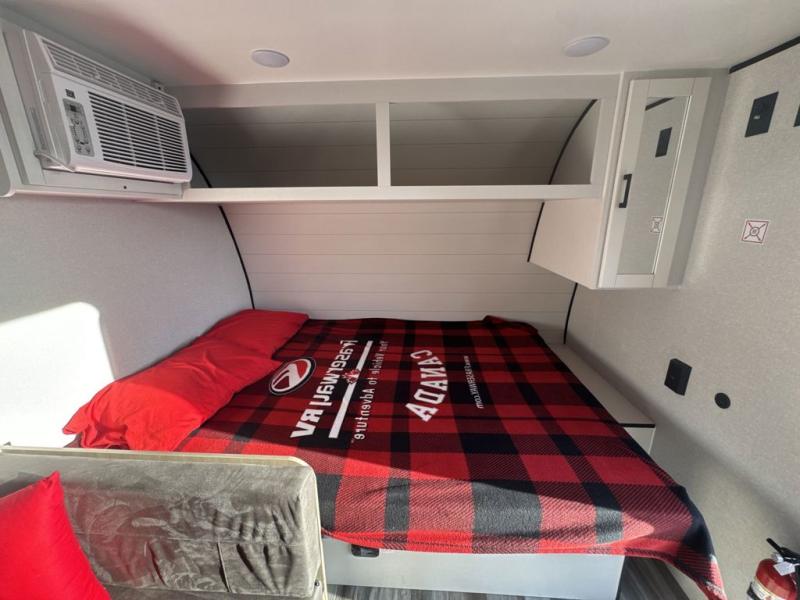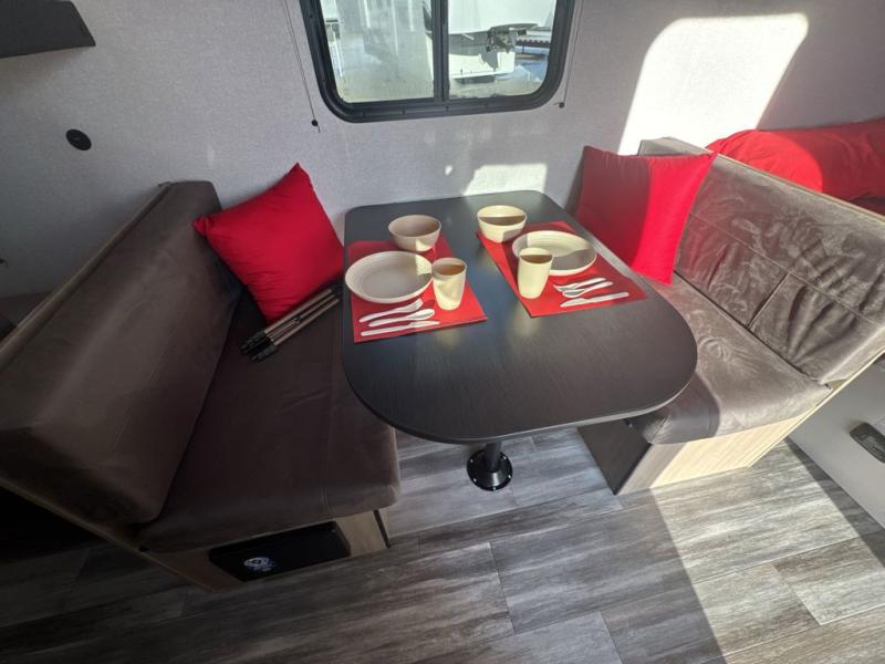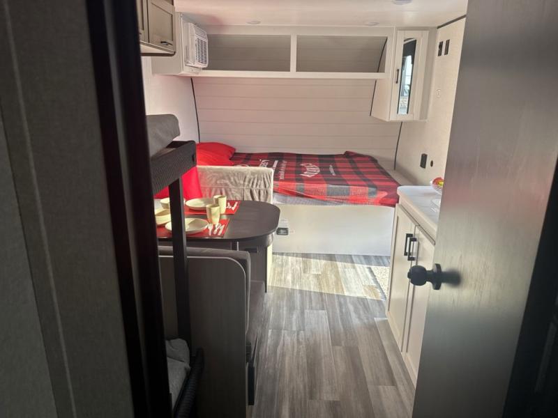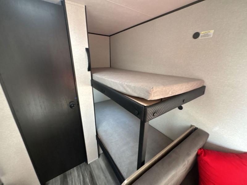 Your crew of five will love camping in this single-axle travel trailer! There are bunk beds in the rear corner and a full bath in the other rear corner for easy nighttime use. You will have the front queen bed to yourselves, along with an overhead shelf and a nightstand/wardrobe for your clothes. The booth dinette provides a place to dine, play games, and even let an extra guest stay over. The Customer Value Package on this Sport Edition model includes a 19K BTU furnace, stabilizer jacks, a power awning, an entry door with a window and shade prep, and many more stand-out features!