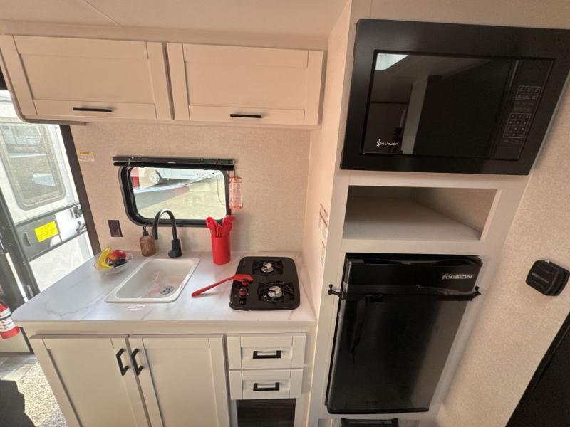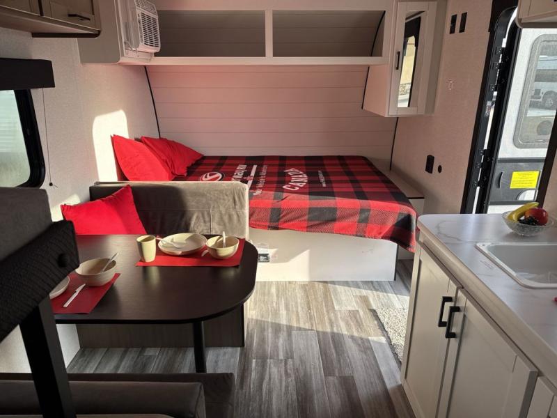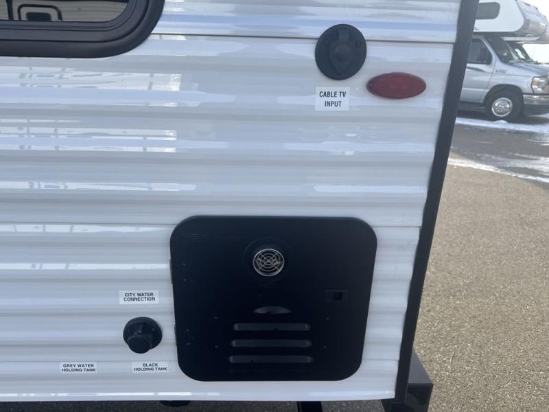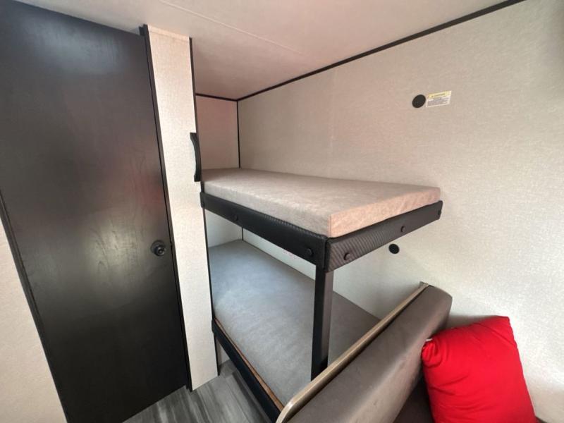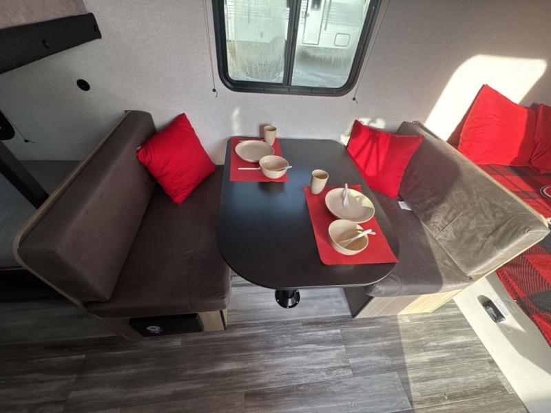 Your crew of five will love camping in this single-axle travel trailer! There are bunk beds in the rear corner and a full bath in the other rear corner for easy nighttime use. You will have the front queen bed to yourselves, along with an overhead shelf and a nightstand/wardrobe for your clothes. The booth dinette provides a place to dine, play games, and even let an extra guest stay over. The Customer Value Package on this Sport Edition model includes a 19K BTU furnace, stabilizer jacks, a power awning, an entry door with a window and shade prep, and many more stand-out features!