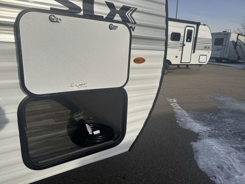 The Jayco Jay Flight SLX travel trailer is quite easy to own because it is lightweight for an easier towing experience. Built on a fully integrated A-frame with galvanized-steel, impact-resistant wheel wells, the Jay Flight SLX has quality at its very foundation. That quality continues on to the electric self-adjusting brakes, easy-lube hubs, Magnum Truss roof system, and LP quick connect. Some of what the mandatory Customer Value Package includes is backup camera prep, Keyed-Alike entry and baggage doors, and an on-demand tankless water heater.