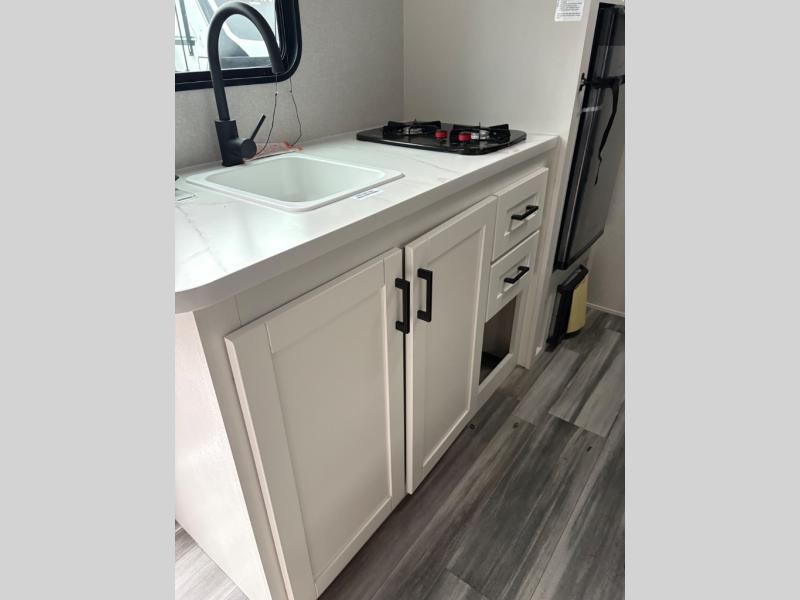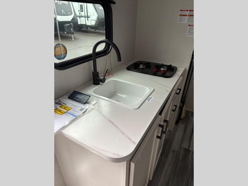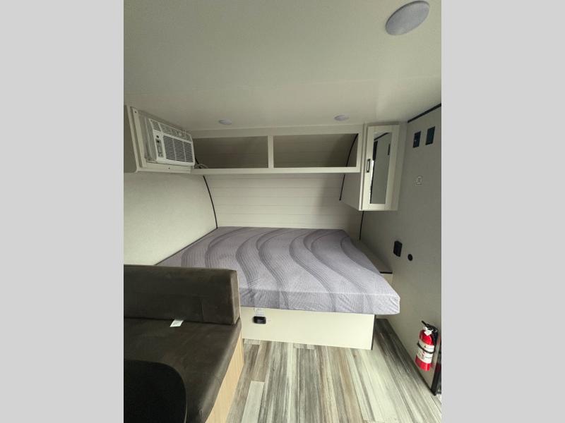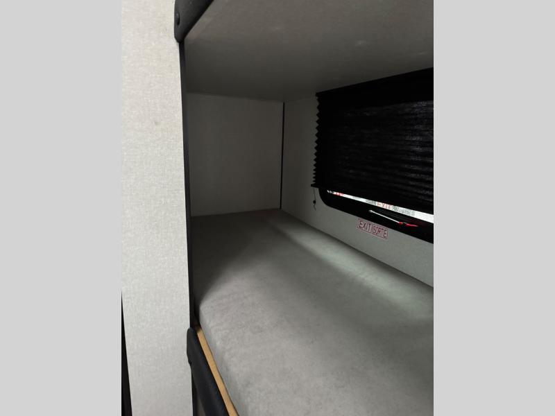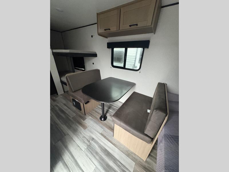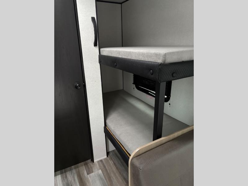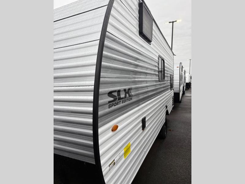 Your crew of five will love camping in this single-axle travel trailer! There are bunk beds in the rear corner and a full bath in the other rear corner for easy nighttime use. You will have the front queen bed to yourselves, along with an overhead shelf and a nightstand/wardrobe for your clothes. The booth dinette provides a place to dine, play games, and even let an extra guest stay over. The Customer Value Package on this Sport Edition model includes a 19K BTU furnace, stabilizer jacks, a power awning, an entry door with a window and shade prep, and many more stand-out features!