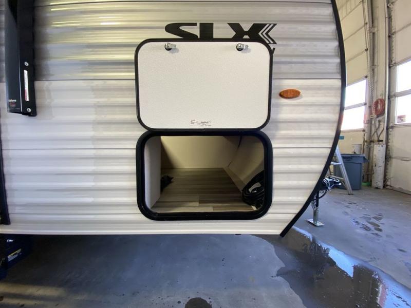 The Jayco Jay Flight SLX travel trailer is quite easy to own because it is lightweight for an easier towing experience. Built on a fully integrated A-frame with galvanized-steel, impact-resistant wheel wells, the Jay Flight SLX has quality at its very foundation. That quality continues on to the electric self-adjusting brakes, easy-lube hubs, Magnum Truss roof system, and LP quick connect. Some of what the mandatory Customer Value Package includes is backup camera prep, Keyed-Alike entry and baggage doors, and an on-demand tankless water heater.