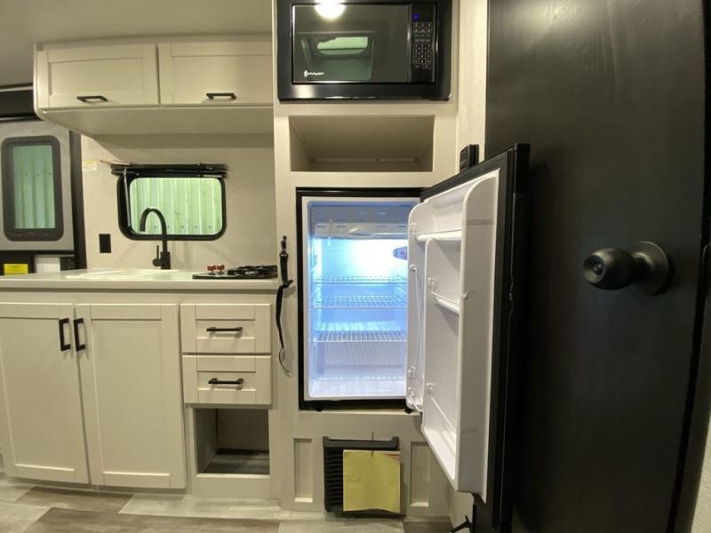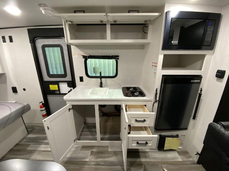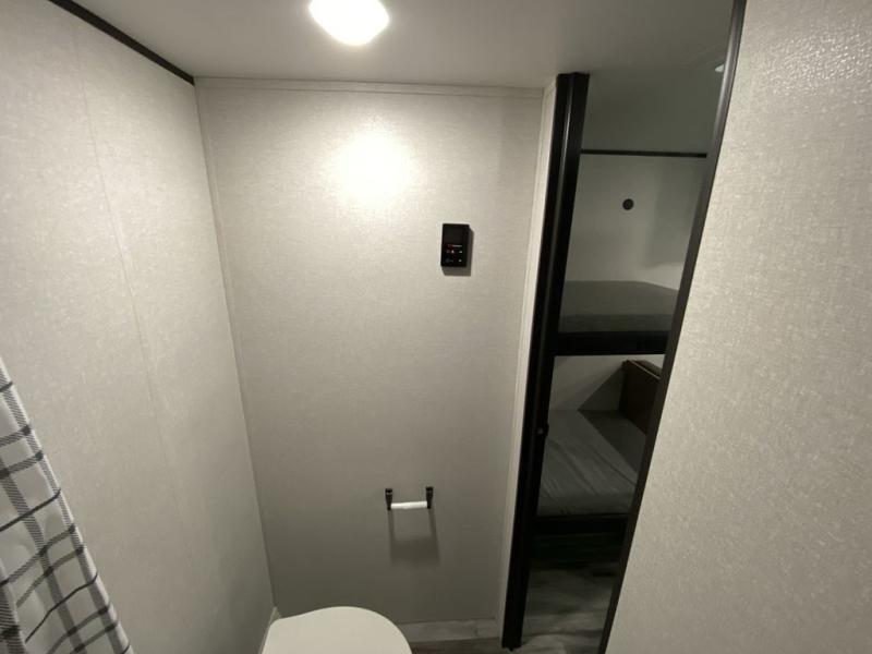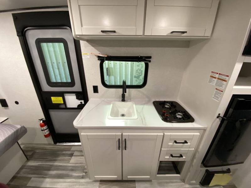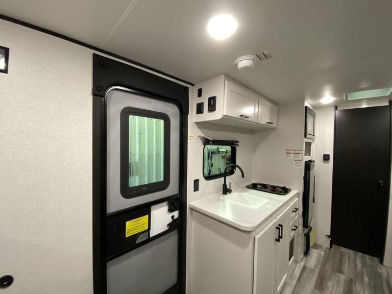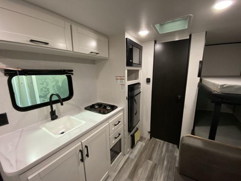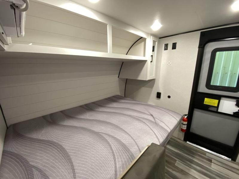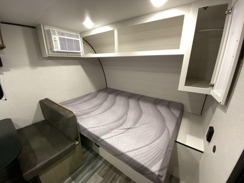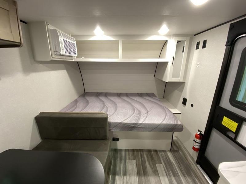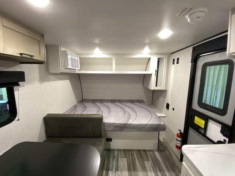 Your crew of five will love camping in this single-axle travel trailer! There are bunk beds in the rear corner and a full bath in the other rear corner for easy nighttime use. You will have the front queen bed to yourselves, along with an overhead shelf and a nightstand/wardrobe for your clothes. The booth dinette provides a place to dine, play games, and even let an extra guest stay over. The Customer Value Package on this Sport Edition model includes a 19K BTU furnace, stabilizer jacks, a power awning, an entry door with a window and shade prep, and many more stand-out features!