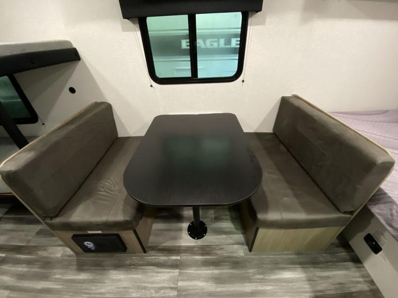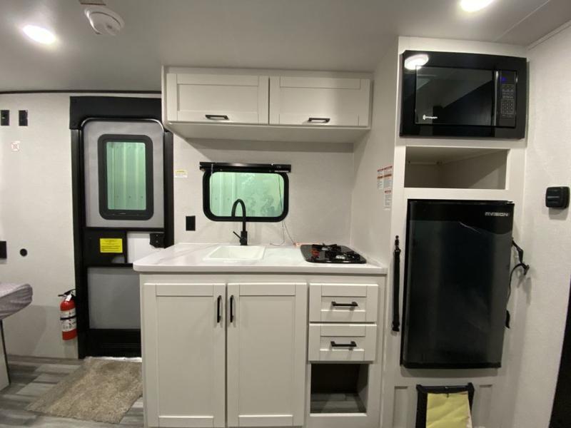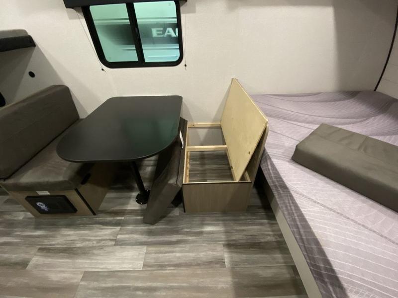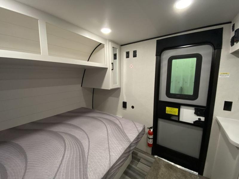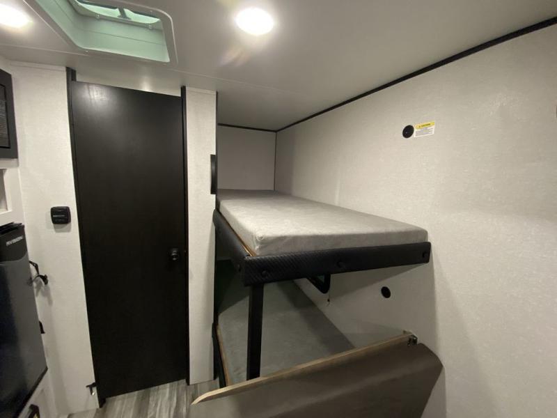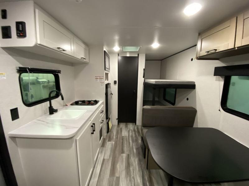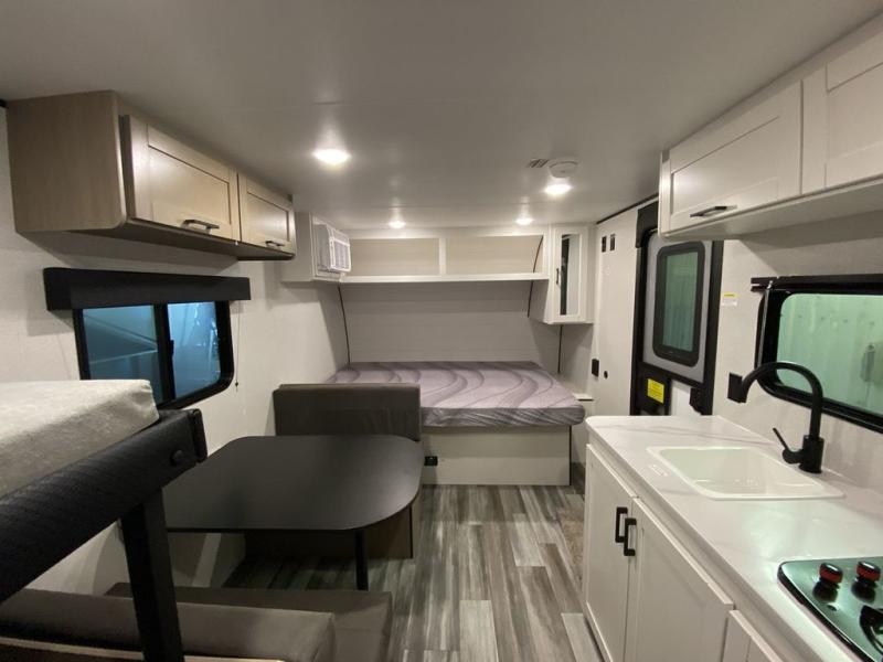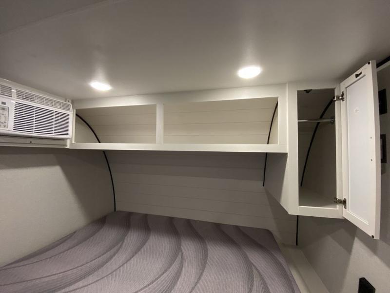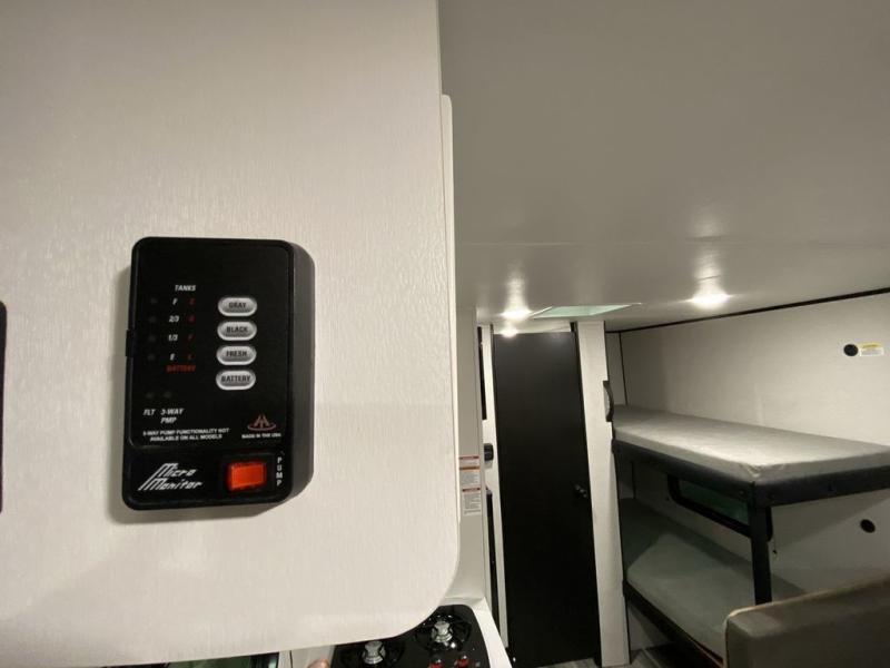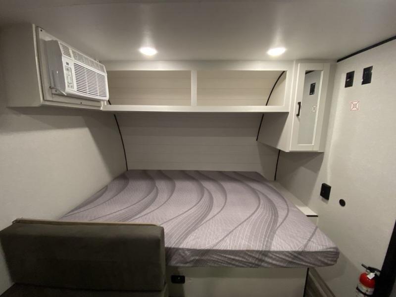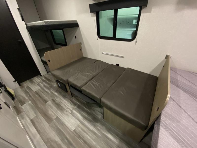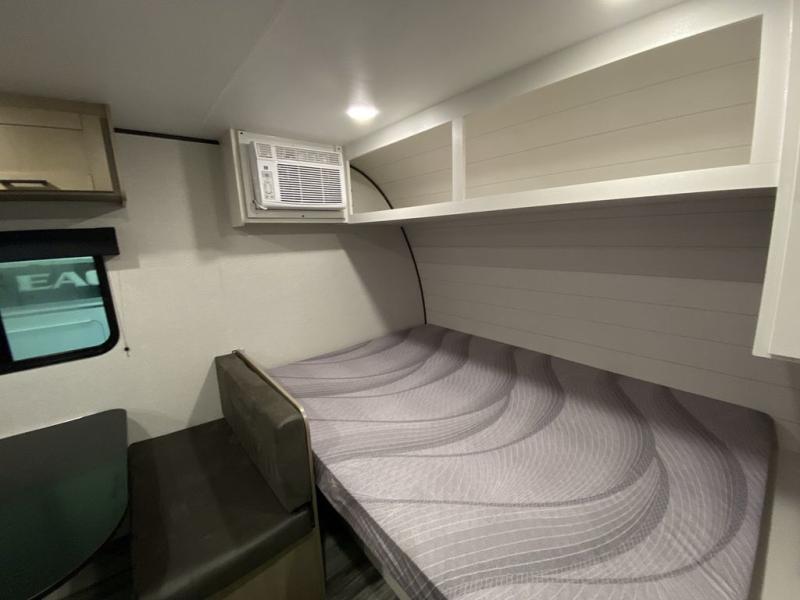 Your crew of five will love camping in this single-axle travel trailer! There are bunk beds in the rear corner and a full bath in the other rear corner for easy nighttime use. You will have the front queen bed to yourselves, along with an overhead shelf and a nightstand/wardrobe for your clothes. The booth dinette provides a place to dine, play games, and even let an extra guest stay over. The Customer Value Package on this Sport Edition model includes a 19K BTU furnace, stabilizer jacks, a power awning, an entry door with a window and shade prep, and many more stand-out features!