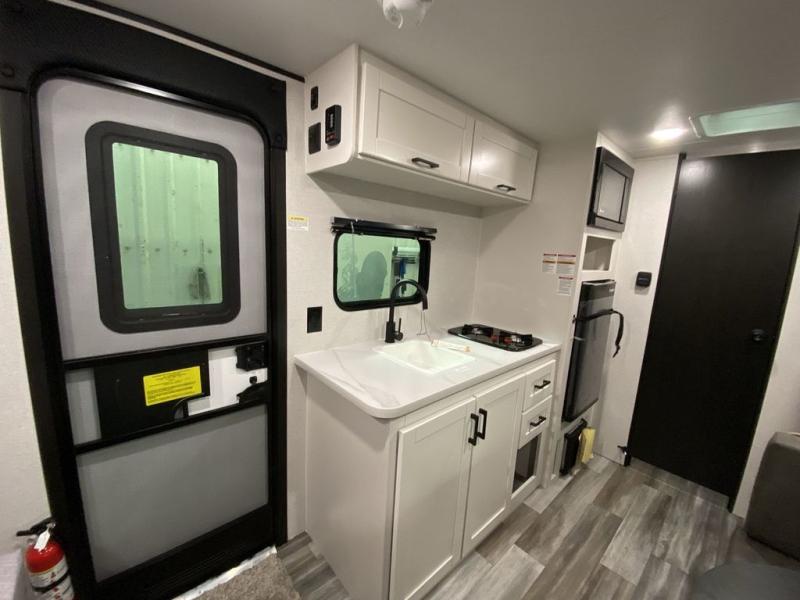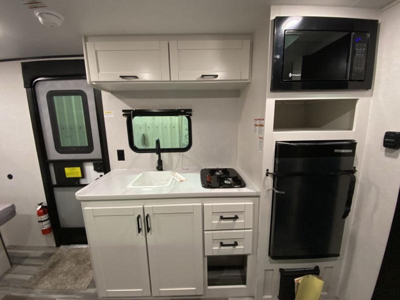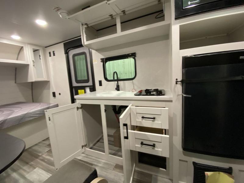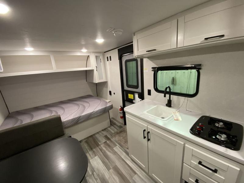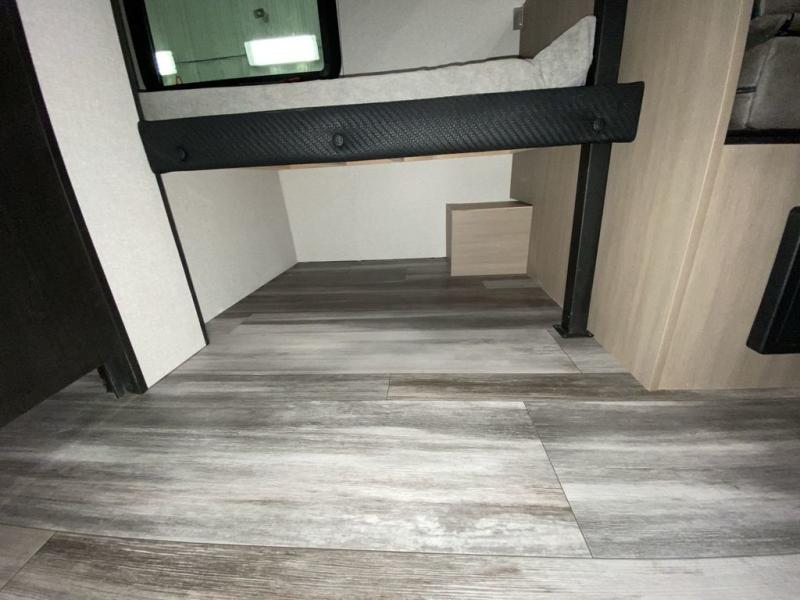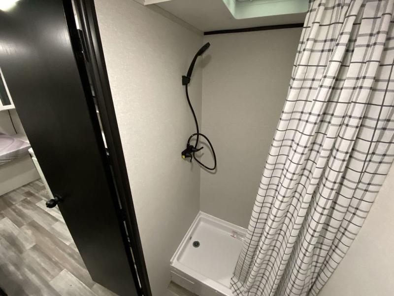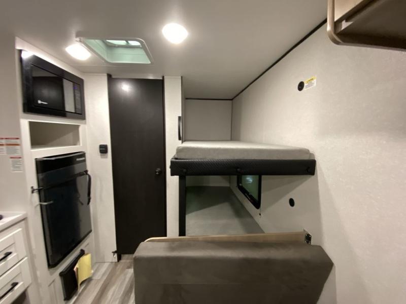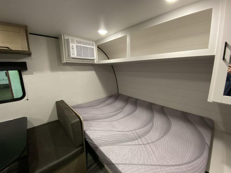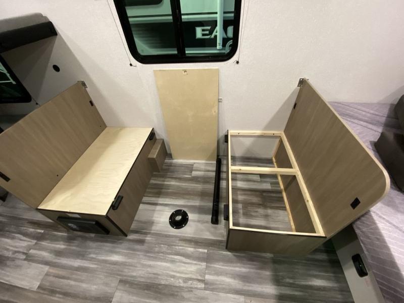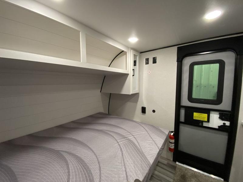 Your crew of five will love camping in this single-axle travel trailer! There are bunk beds in the rear corner and a full bath in the other rear corner for easy nighttime use. You will have the front queen bed to yourselves, along with an overhead shelf and a nightstand/wardrobe for your clothes. The booth dinette provides a place to dine, play games, and even let an extra guest stay over. The Customer Value Package on this Sport Edition model includes a 19K BTU furnace, stabilizer jacks, a power awning, an entry door with a window and shade prep, and many more stand-out features!