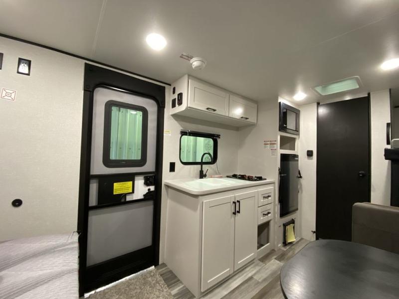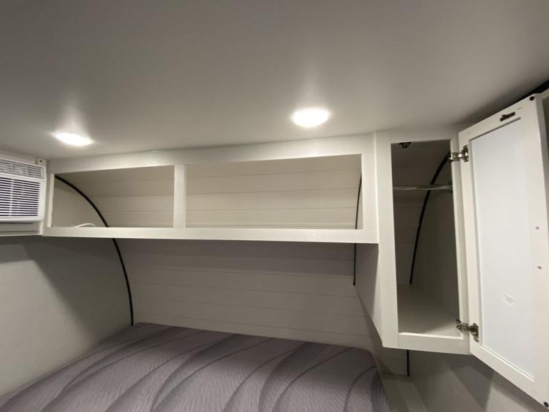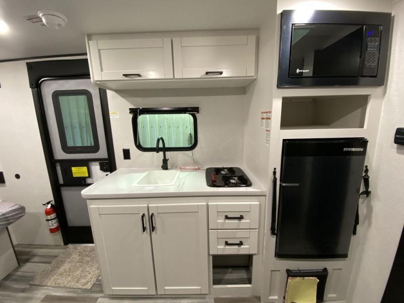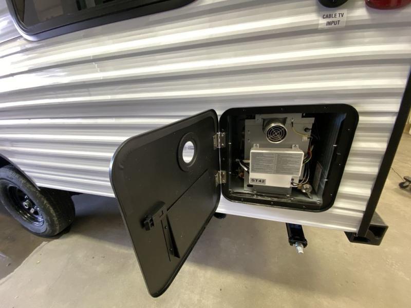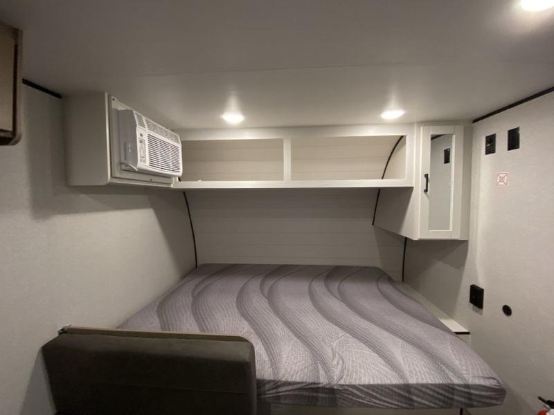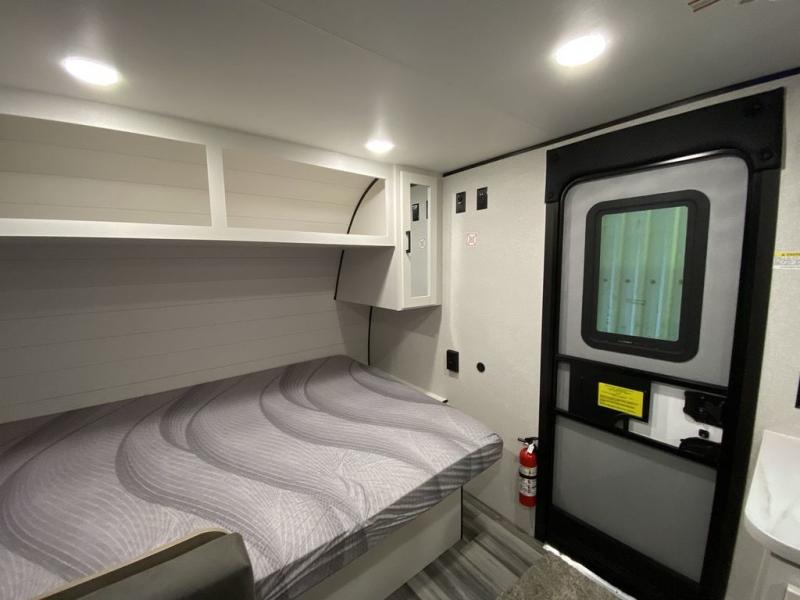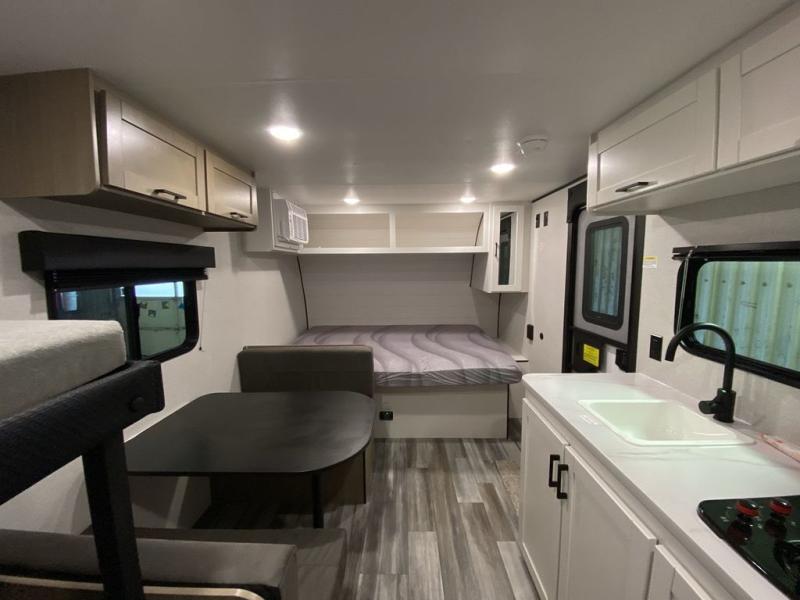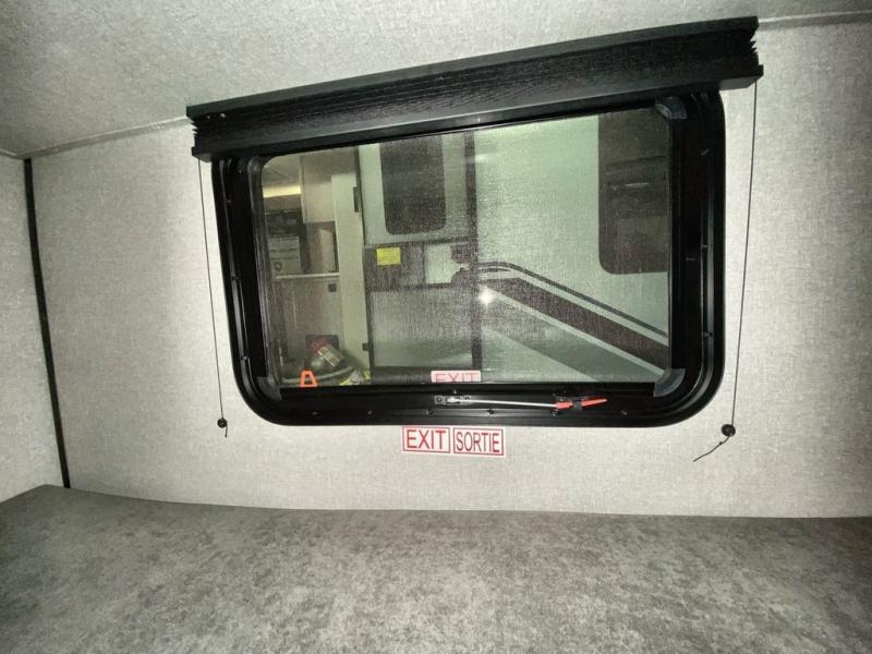 Your crew of five will love camping in this single-axle travel trailer! There are bunk beds in the rear corner and a full bath in the other rear corner for easy nighttime use. You will have the front queen bed to yourselves, along with an overhead shelf and a nightstand/wardrobe for your clothes. The booth dinette provides a place to dine, play games, and even let an extra guest stay over. The Customer Value Package on this Sport Edition model includes a 19K BTU furnace, stabilizer jacks, a power awning, an entry door with a window and shade prep, and many more stand-out features!