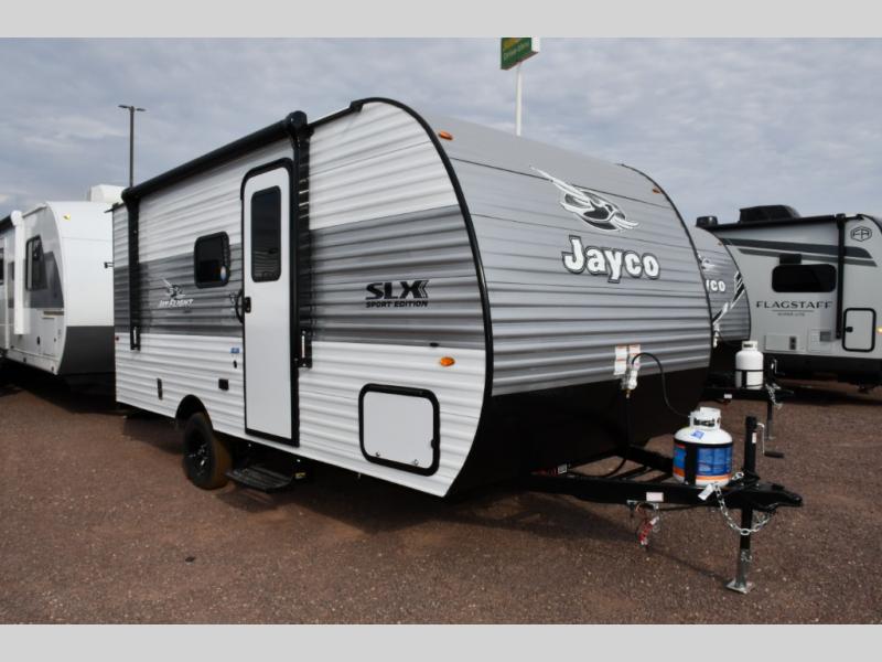 Take your camping to the next level with the easy-to-tow and impressively equipped Jayco Jay Flight SLX 170BHW Sport Edition. This single-axle travel trailer is small in size but big on capability—perfect for weekend warriors and first-time RVers alike. Whether you're chasing waterfalls or setting up at a lakeside site, this unit is made to make outdoor memories happen.