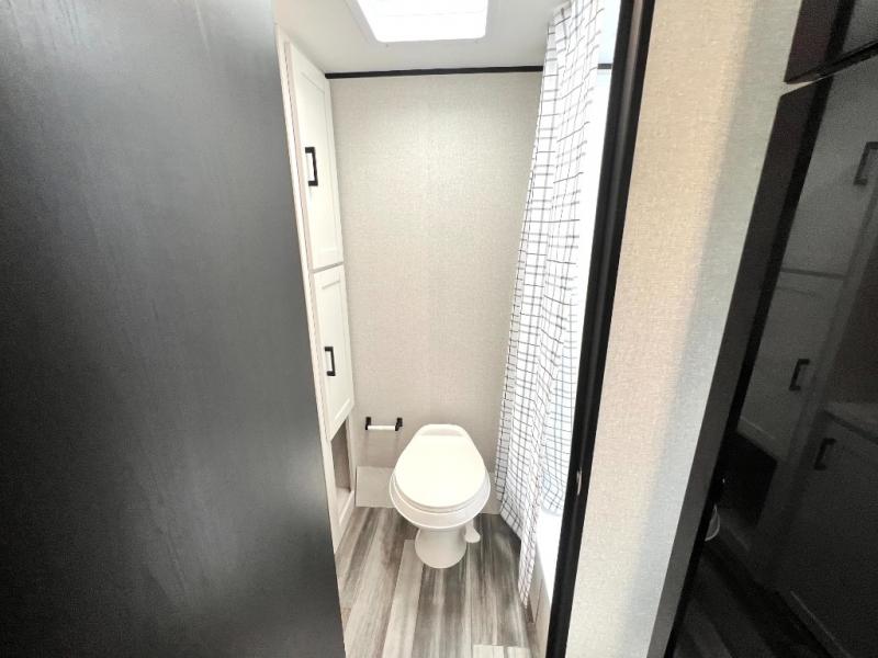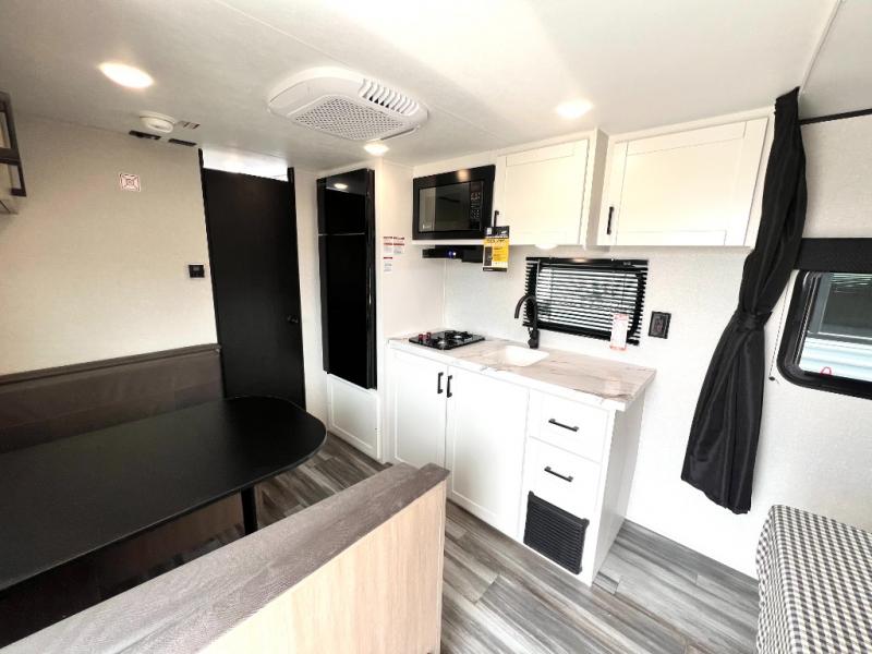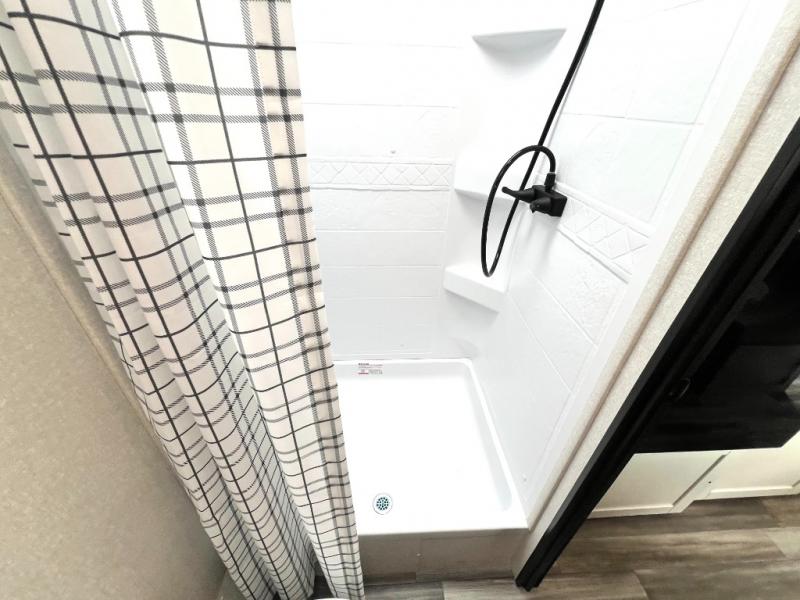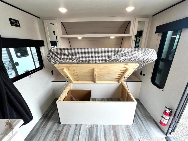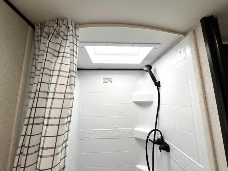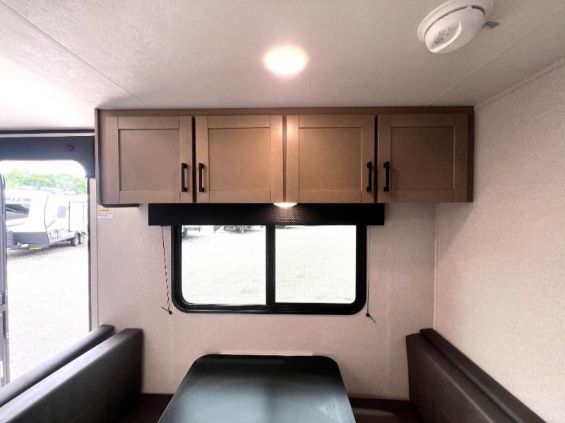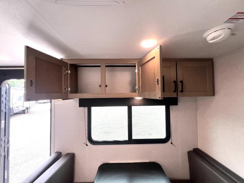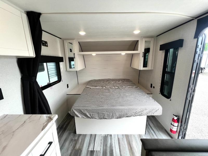 This travel trailer includes everything you need for fun trips at the lake. When you arrive at the campground, you can unload the exterior storage, then put out the 10' power awning. The booth dinette inside will provide a place to dine together, and the full rear bath with a 24" x 32" shower will make it easier than ever to clean up after a day of hiking. A front RV queen bed will provide a great night's rest, and the overhead shelf will be perfect for books or personal belongings. The optional STX Edition can be added on this model which features 16 in. off-road tires, triple entry steps, a power tongue jack, and more!