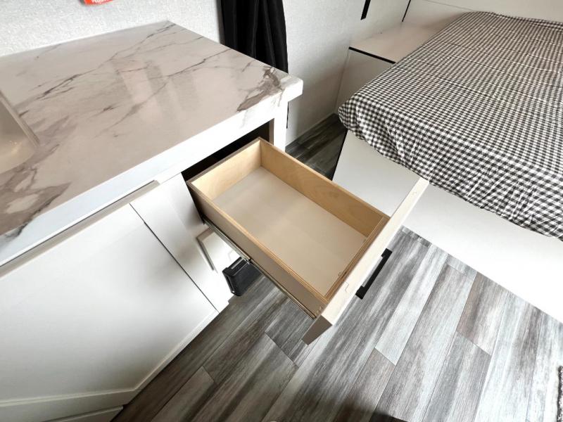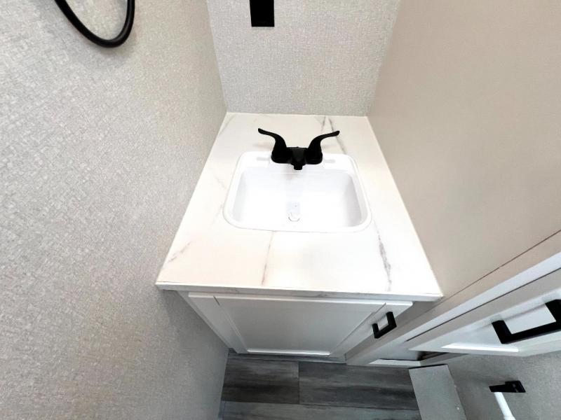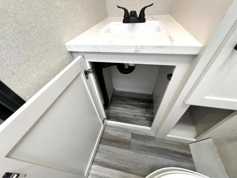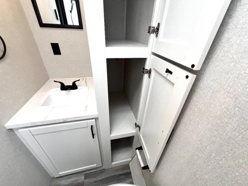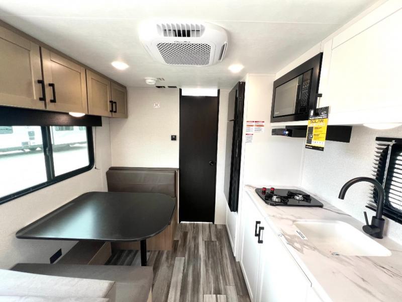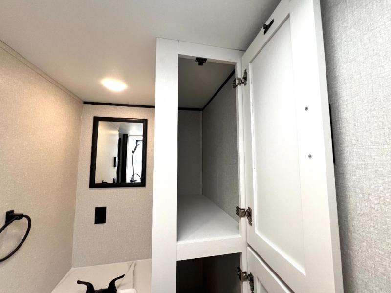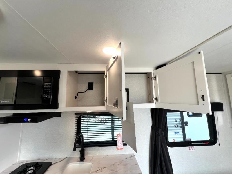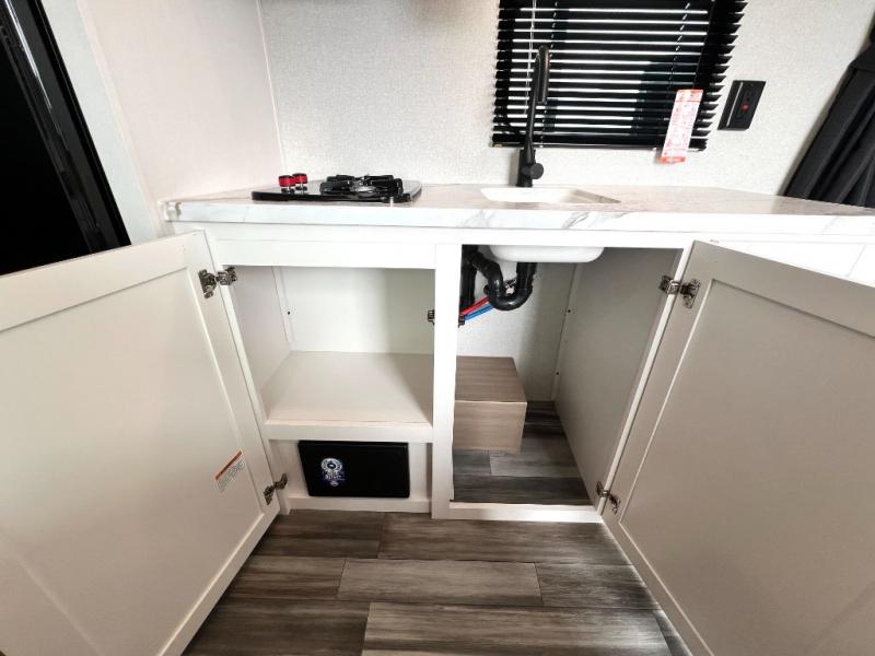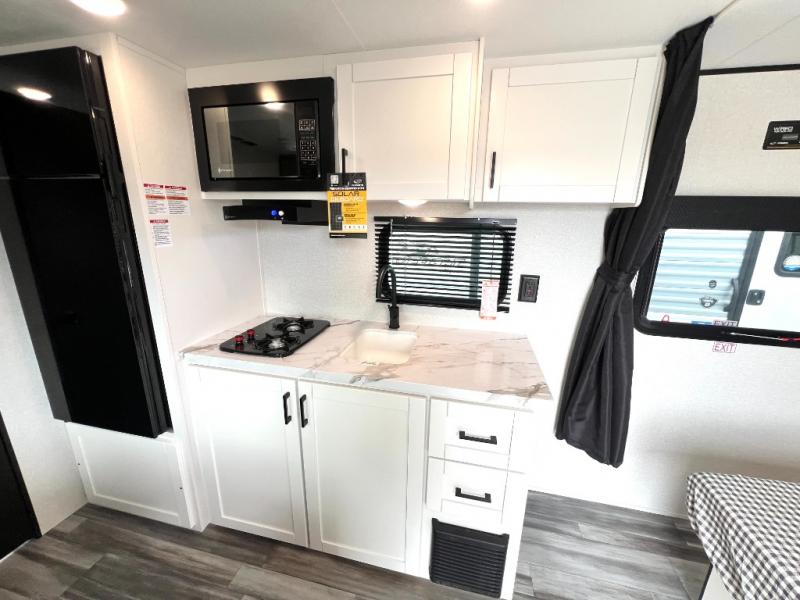 This travel trailer includes everything you need for fun trips at the lake. When you arrive at the campground, you can unload the exterior storage, then put out the 10' power awning. The booth dinette inside will provide a place to dine together, and the full rear bath with a 24" x 32" shower will make it easier than ever to clean up after a day of hiking. A front RV queen bed will provide a great night's rest, and the overhead shelf will be perfect for books or personal belongings. The optional STX Edition can be added on this model which features 16 in. off-road tires, triple entry steps, a power tongue jack, and more!