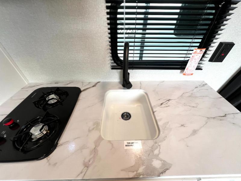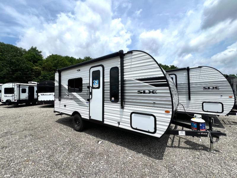The Jayco Jay Flight SLX travel trailer is quite easy to own because it is lightweight for an easier towing experience. Built on a fully integrated A-frame with galvanized-steel, impact-resistant wheel wells, the Jay Flight SLX has quality at its very foundation. That quality continues on to the electric self-adjusting brakes, easy-lube hubs, Magnum Truss roof system, and LP quick connect. Some of what the mandatory Customer Value Package includes is backup camera prep, Keyed-Alike entry and baggage doors, marine grade exterior speakers, and an on-demand tankless water heater.
