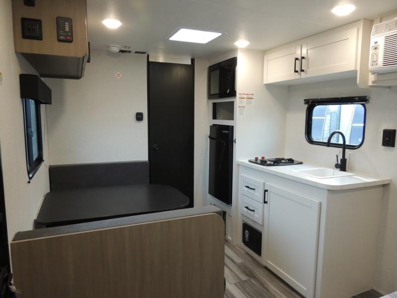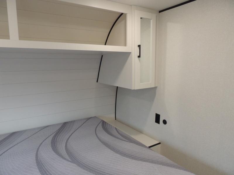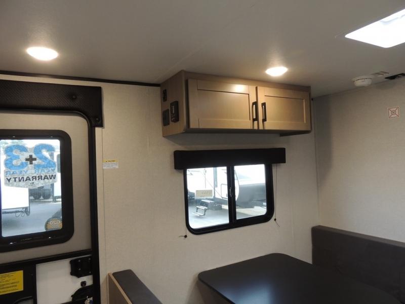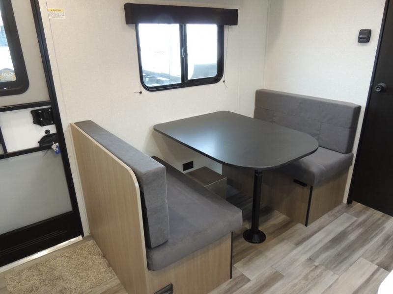 This travel trailer includes everything you need for fun trips at the lake. When you arrive at the campground, you can unload the exterior storage, then put out the 10' power awning. The booth dinette inside will provide a place to dine together, and the full rear bath with a 24" x 32" shower will make it easier than ever to clean up after a day of hiking. A front RV queen bed will provide a great night's rest, and the overhead shelf will be perfect for books or personal belongings. The optional STX Edition can be added on this model which features 16 in. off-road tires, triple entry steps, a power tongue jack, and more!