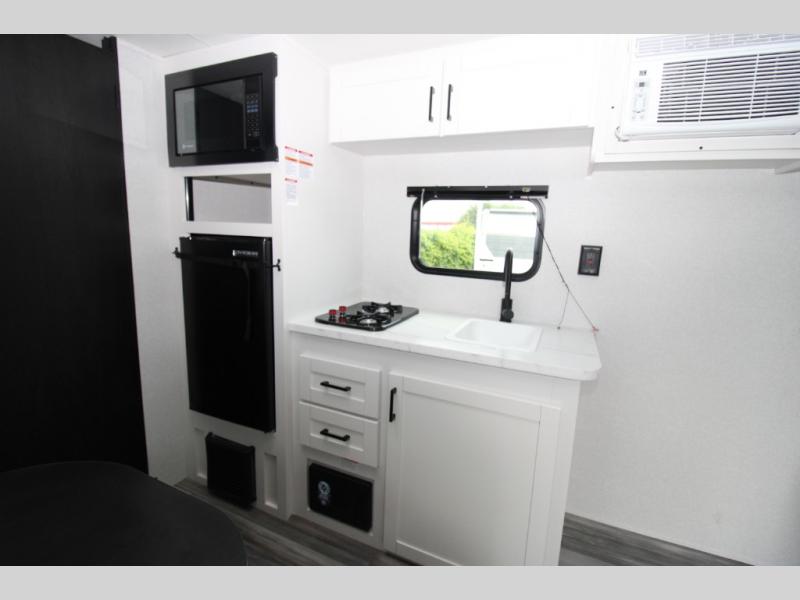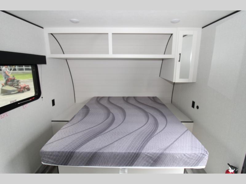 This travel trailer includes everything you need for fun trips at the lake. When you arrive at the campground, you can unload the exterior storage, then put out the 10' power awning. The booth dinette inside will provide a place to dine together, and the full rear bath with a shower will make it easier than ever to clean up after a day of hiking. A front RV queen bed will provide a great night's rest, and the overhead shelf will be perfect for books or personal belongings.
