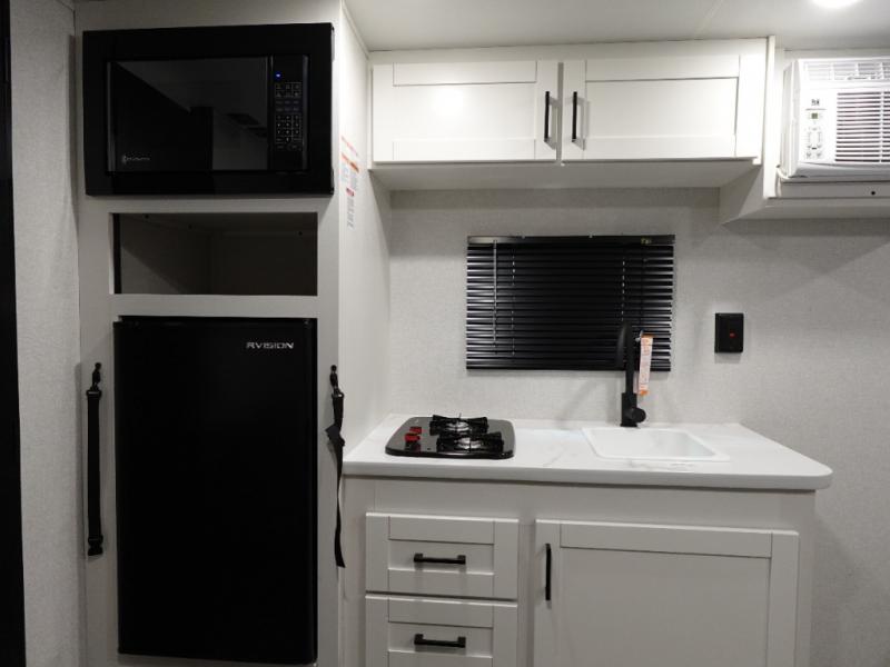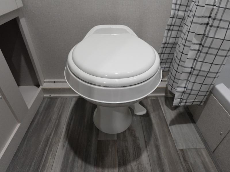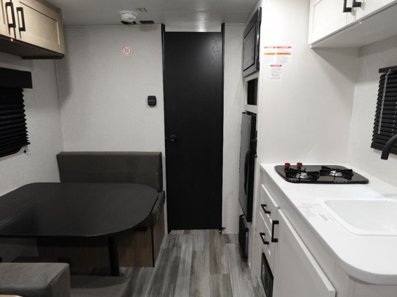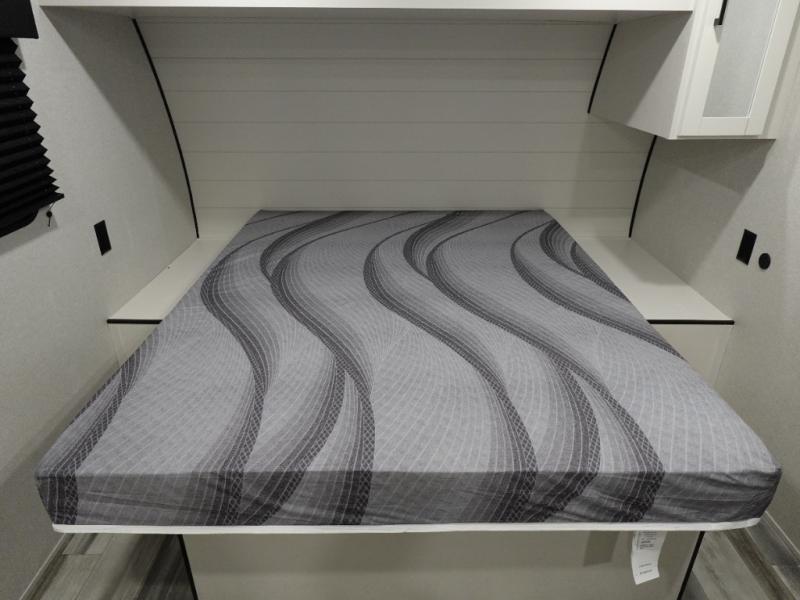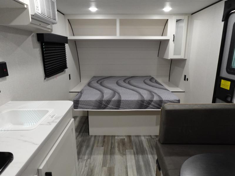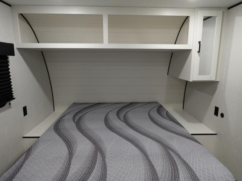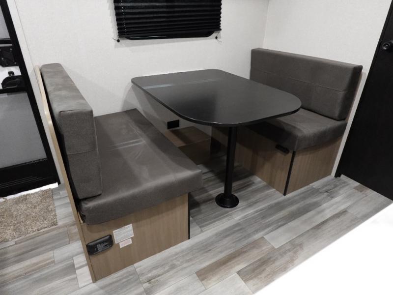This travel trailer includes everything you need for fun trips at the lake. When you arrive at the campground, you can unload the exterior storage, then put out the 10' power awning. The booth dinette inside will provide a place to dine together, and the full rear bath with a shower will make it easier than ever to clean up after a day of hiking. A front RV queen bed will provide a great night's rest, and the overhead shelf will be perfect for books or personal belongings.