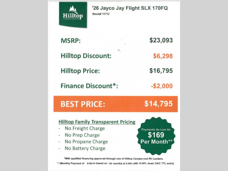 New 2026 Jayco Jay Flight SLX 170FQ Travel Trailer