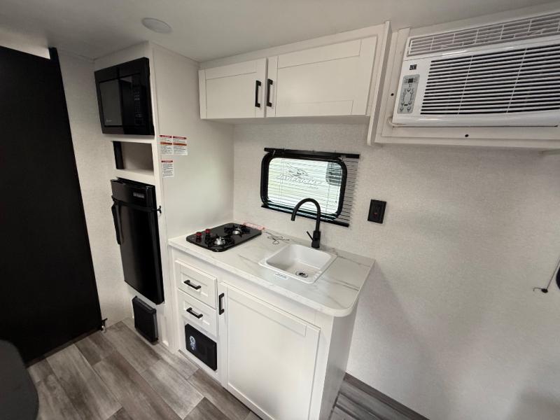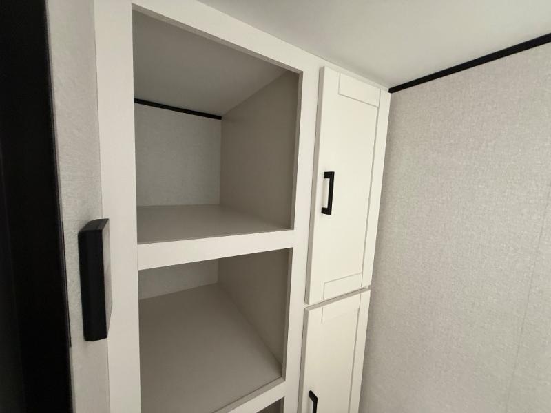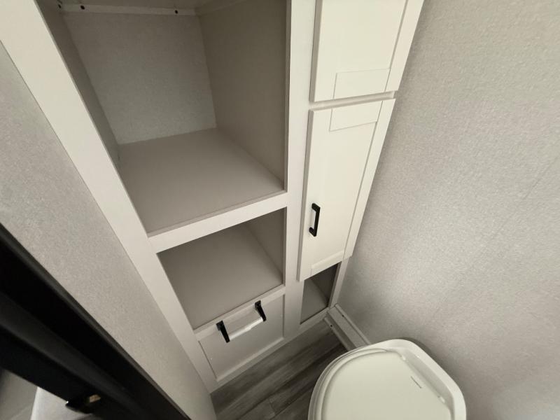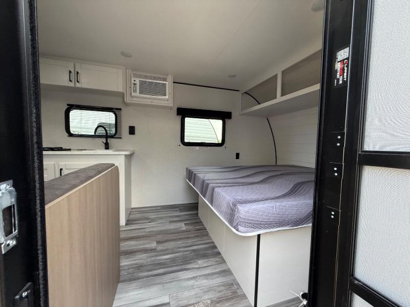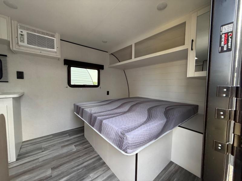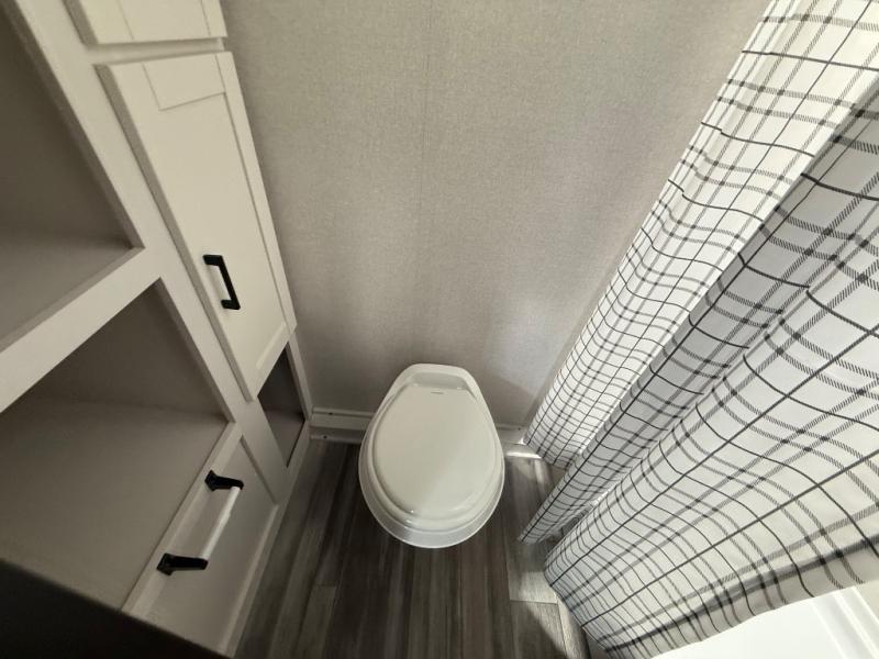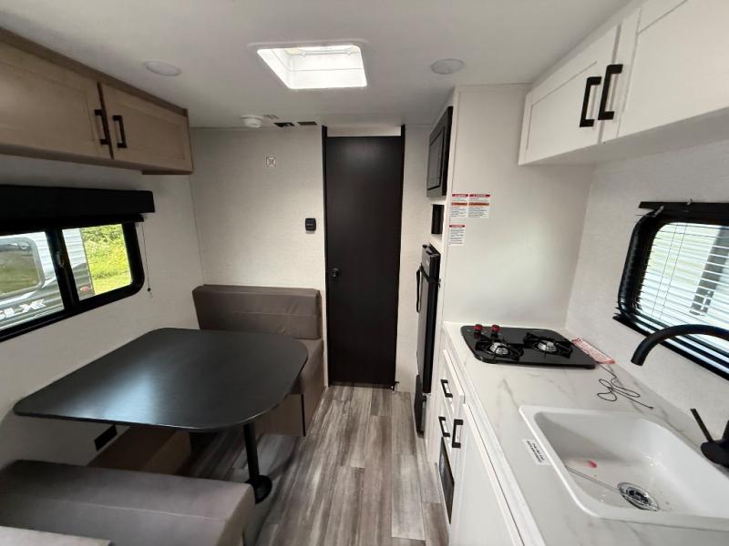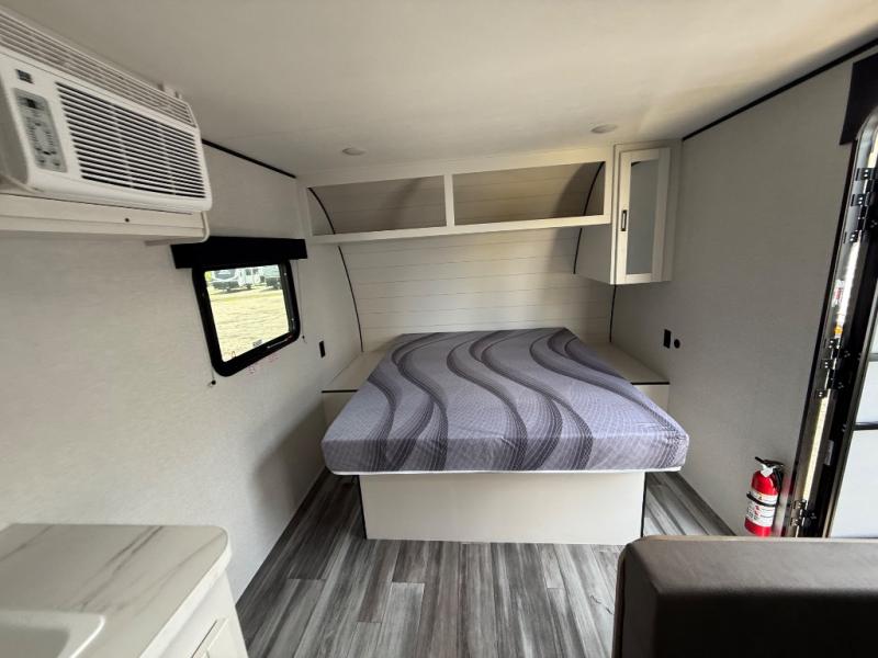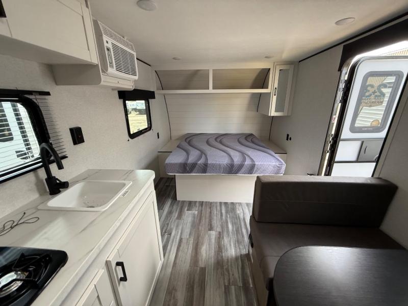 This travel trailer includes everything you need for fun trips at the lake. When you arrive at the campground, you can unload the exterior storage, then put out the 10' power awning. The booth dinette inside will provide a place to dine together, and the full rear bath with a shower will make it easier than ever to clean up after a day of hiking. A front RV queen bed will provide a great night's rest, and the overhead shelf will be perfect for books or personal belongings.