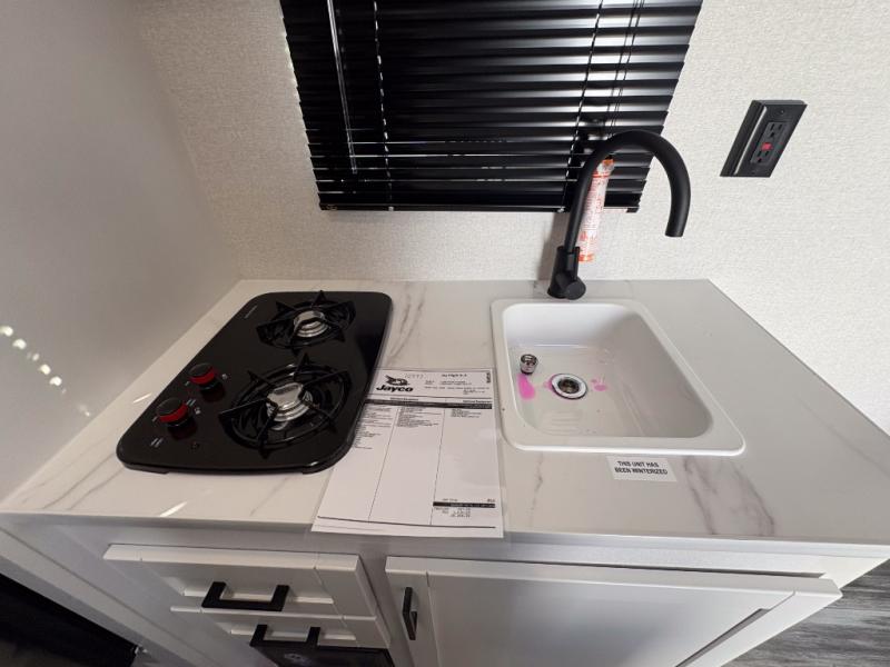 The Jayco Jay Flight SLX travel trailer is quite easy to own because it is lightweight for an easier towing experience. Built on a fully integrated A-frame with galvanized-steel, impact-resistant wheel wells, the Jay Flight SLX has quality at its very foundation. That quality continues on to the electric self-adjusting brakes, easy-lube hubs, Magnum Truss roof system, and LP quick connect. Some of what the mandatory Customer Value Package includes is backup camera prep, Keyed-Alike entry and baggage doors, and an on-demand tankless water heater.
