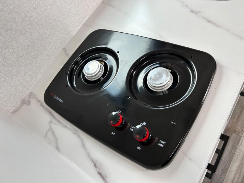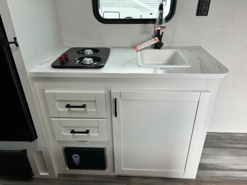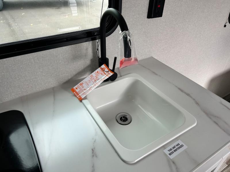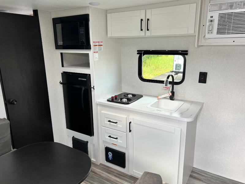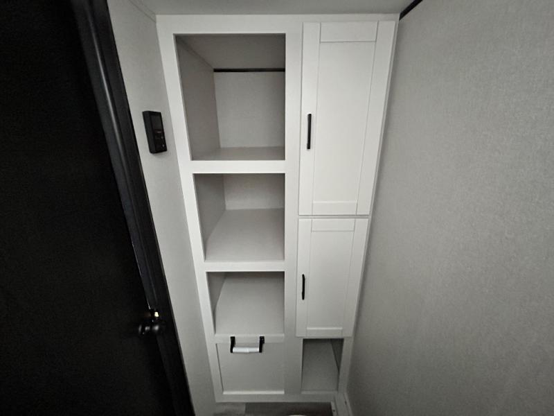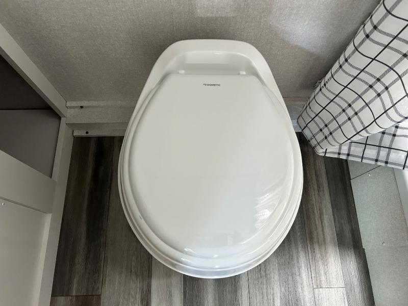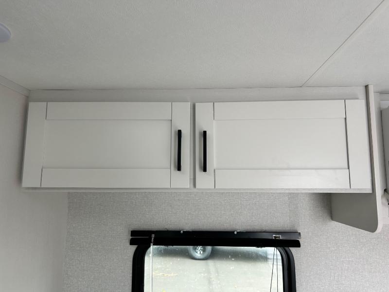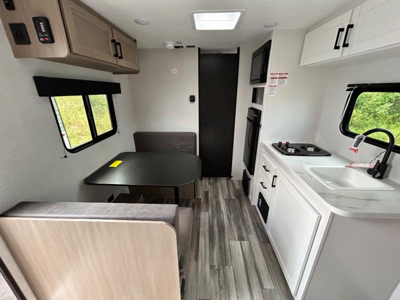 This travel trailer includes everything you need for fun trips at the lake. When you arrive at the campground, you can unload the exterior storage, then put out the 10' power awning. The booth dinette inside will provide a place to dine together, and the full rear bath with a shower will make it easier than ever to clean up after a day of hiking. A front RV queen bed will provide a great night's rest, and the overhead shelf will be perfect for books or personal belongings.