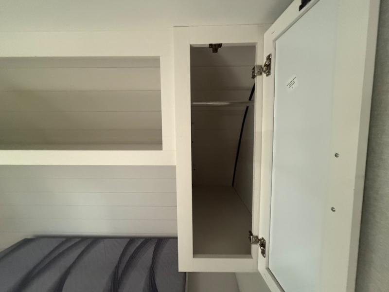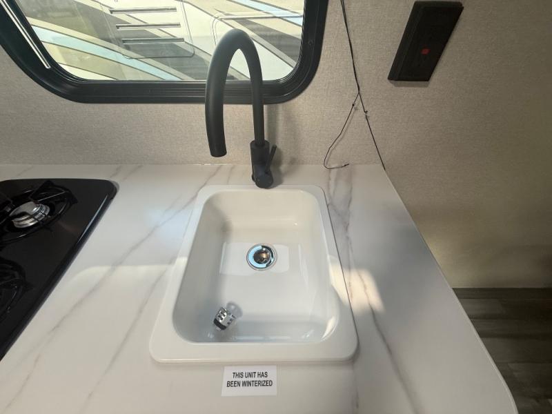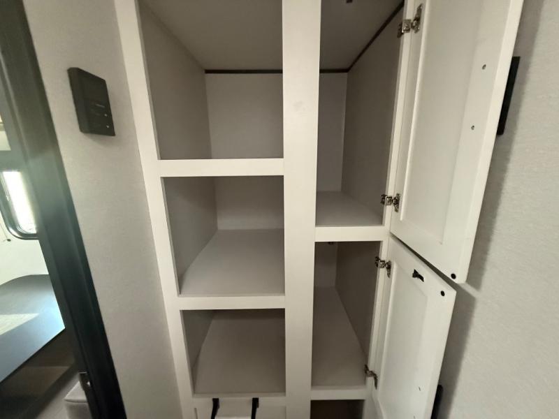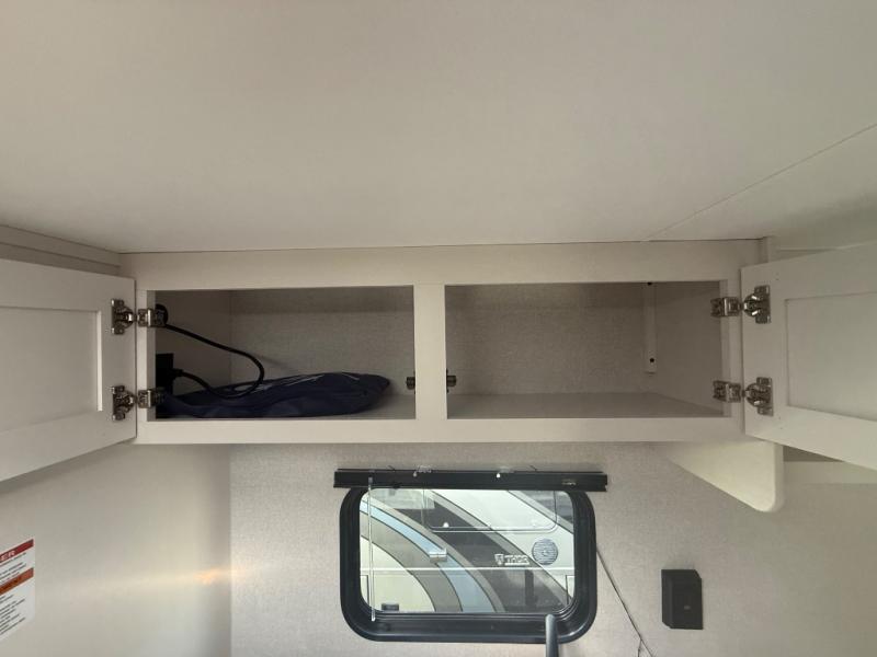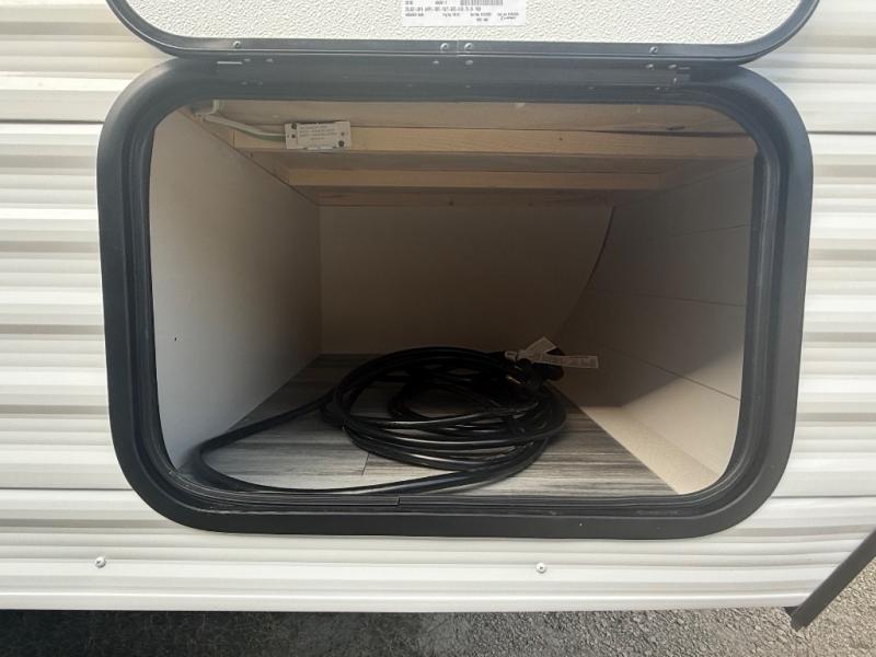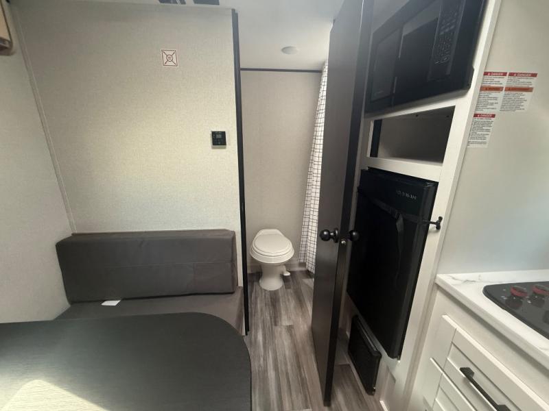 This travel trailer includes everything you need for fun trips at the lake. When you arrive at the campground, you can unload the exterior storage, then put out the 10' power awning. The booth dinette inside will provide a place to dine together, and the full rear bath with a shower will make it easier than ever to clean up after a day of hiking. A front RV queen bed will provide a great night's rest, and the overhead shelf will be perfect for books or personal belongings.