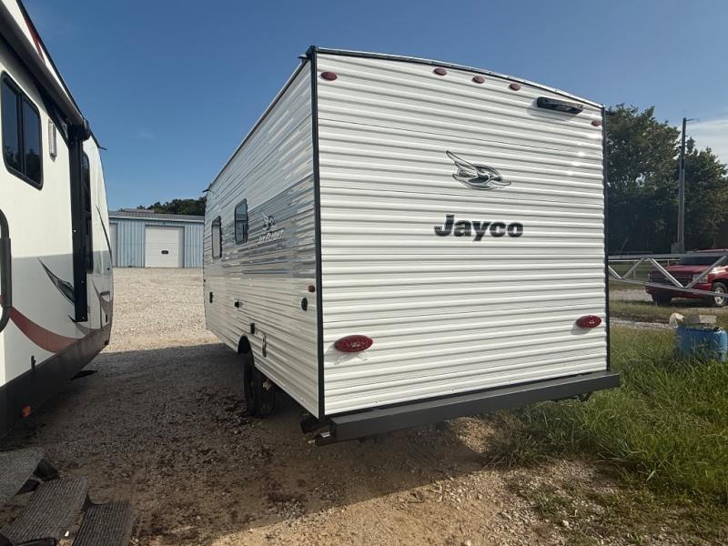 The Jayco Jay Flight SLX travel trailer is quite easy to own because it is lightweight for an easier towing experience. Built on a fully integrated A-frame with galvanized-steel, impact-resistant wheel wells, the Jay Flight SLX has quality at its very foundation. That quality continues on to the electric self-adjusting brakes, easy-lube hubs, Magnum Truss roof system, and LP quick connect. Some of what the mandatory Customer Value Package includes is backup camera prep, Keyed-Alike entry and baggage doors, and an on-demand tankless water heater.