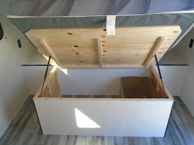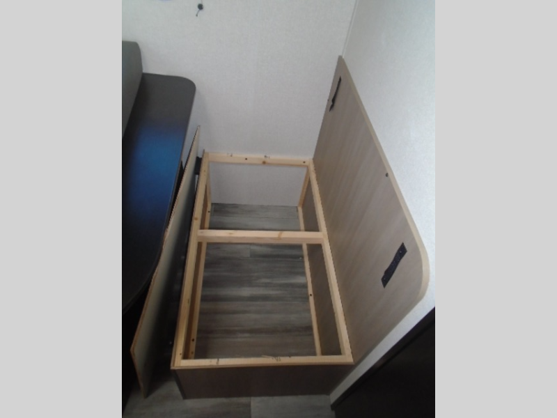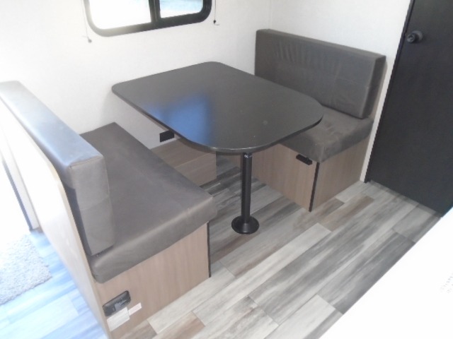 This travel trailer includes everything you need for fun trips at the lake. When you arrive at the campground, you can unload the exterior storage, then put out the 10' power awning. The booth dinette inside will provide a place to dine together, and the full rear bath with a shower will make it easier than ever to clean up after a day of hiking. A front RV queen bed will provide a great night's rest, and the overhead shelf will be perfect for books or personal belongings.